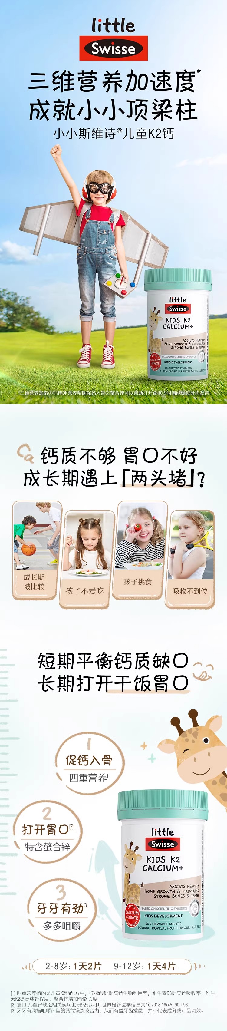 【保税仓】Swisse儿童K2柠檬酸钙60片