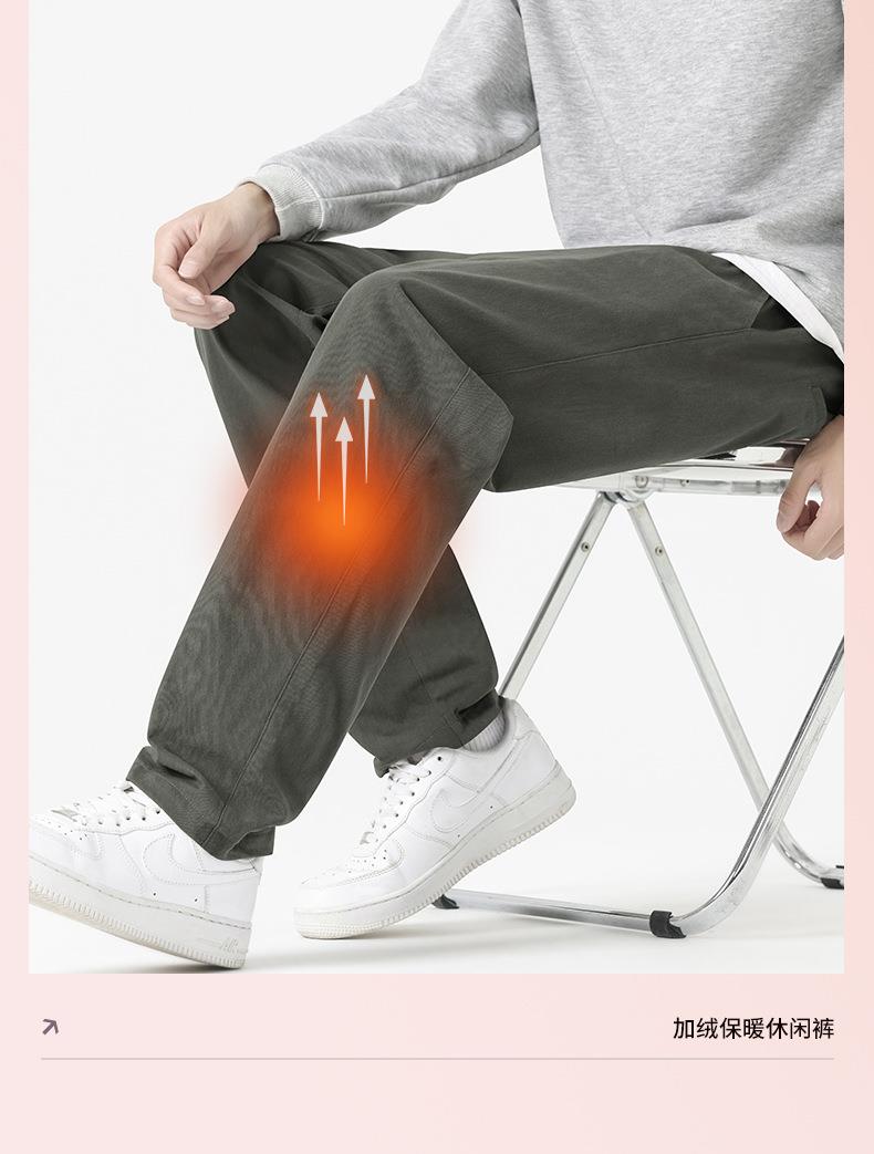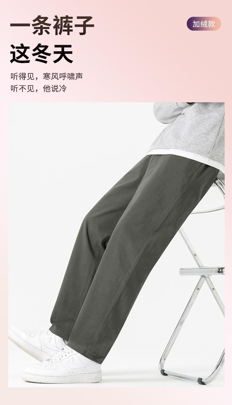 【纯棉直筒休闲裤男长款加绒加厚】秋冬宽松抗皱通勤秋冬季百搭长裤男