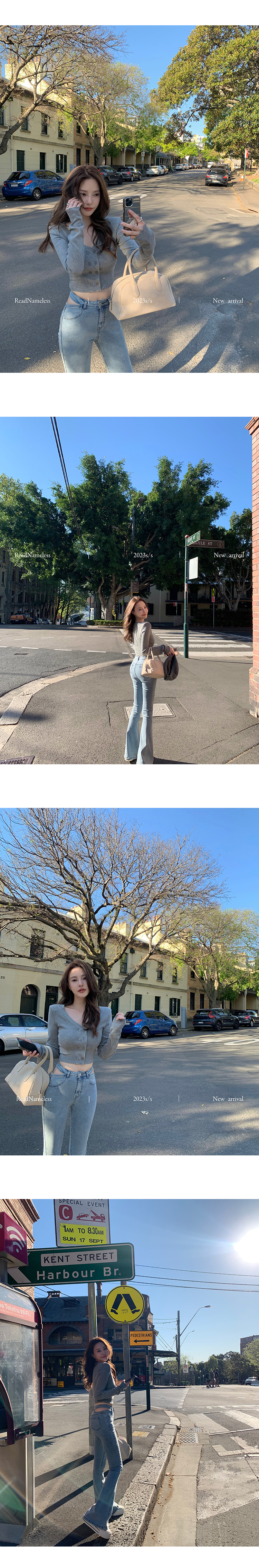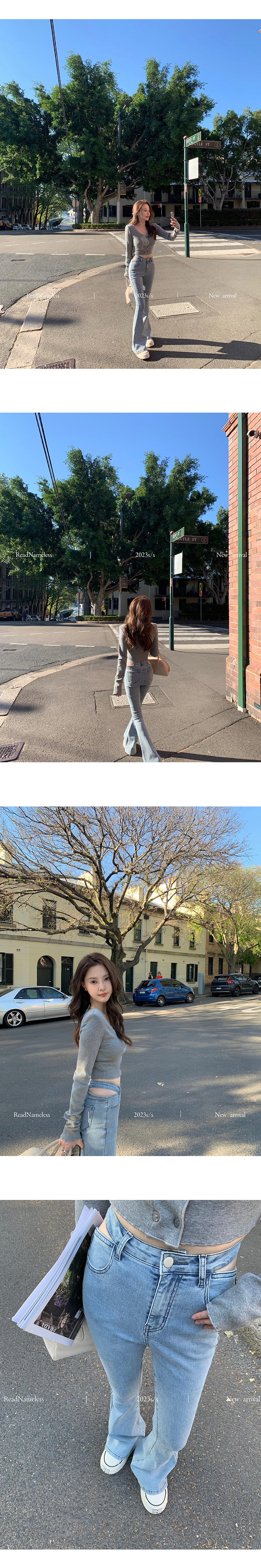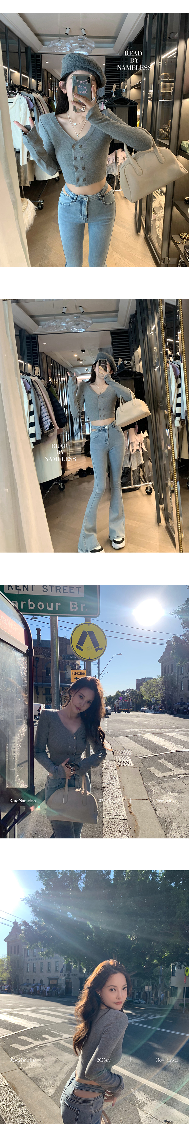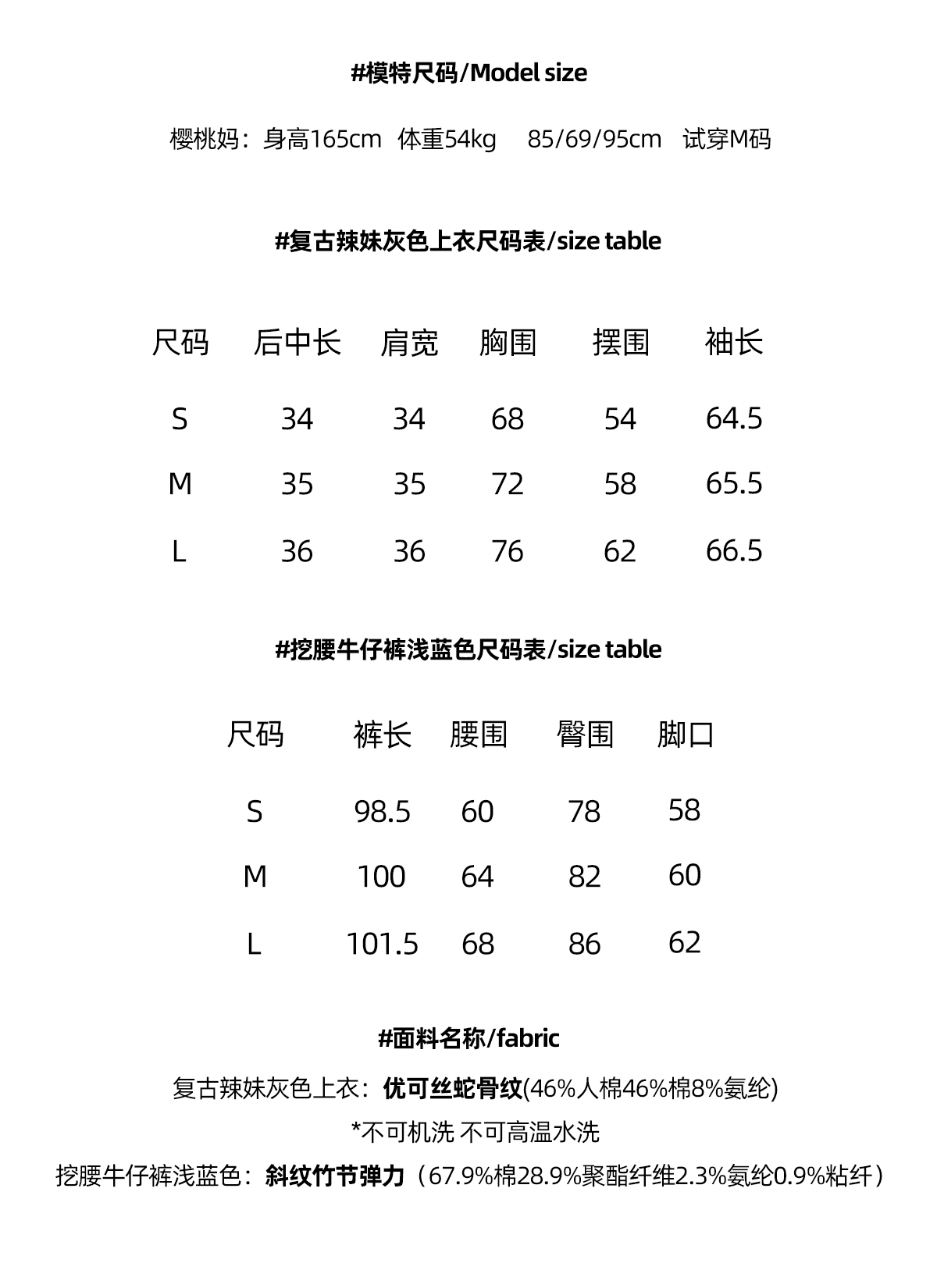 Read Nameless /复古辣妹灰色上衣+挖腰牛仔裤浅蓝色
