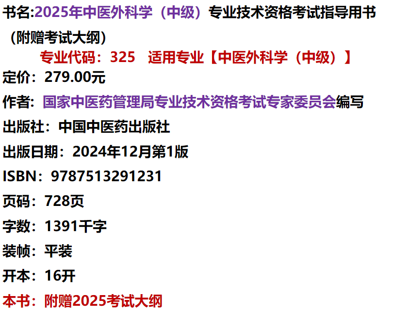 2025年中医外科学(中级)专业技术资格考试指导用书 专业代码325 国家中医药管理局专业技术资格考试专家委员会 中国中医药出版社