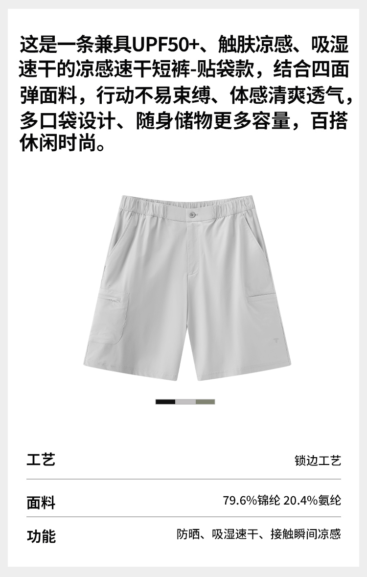 拇指白小衫凉感速干短裤-贴袋款无限系列