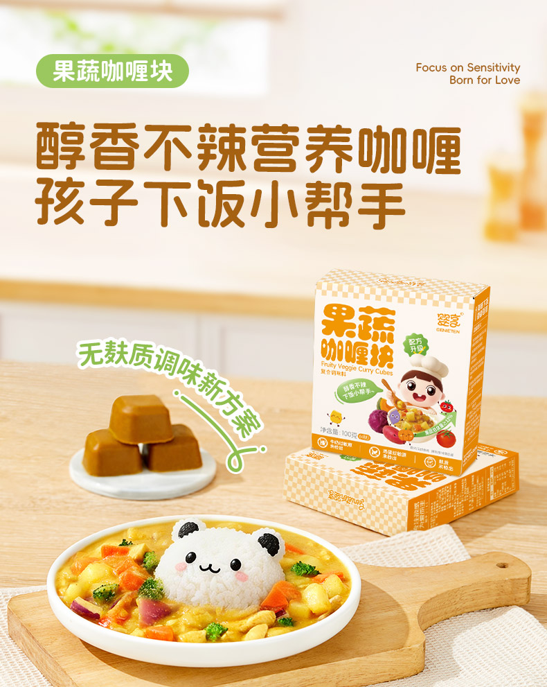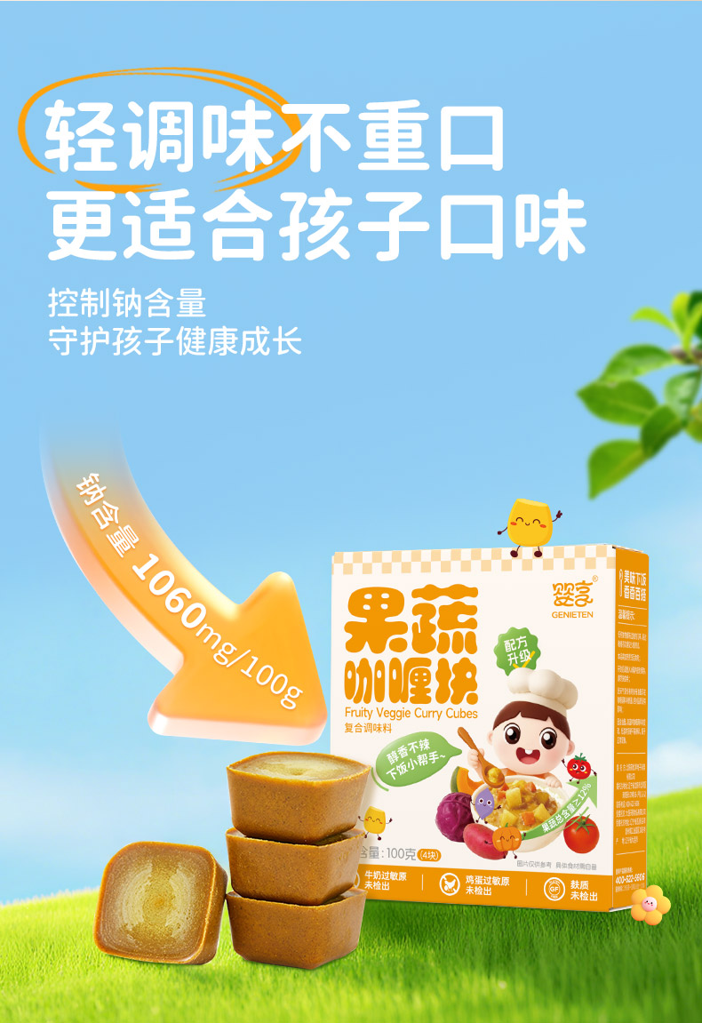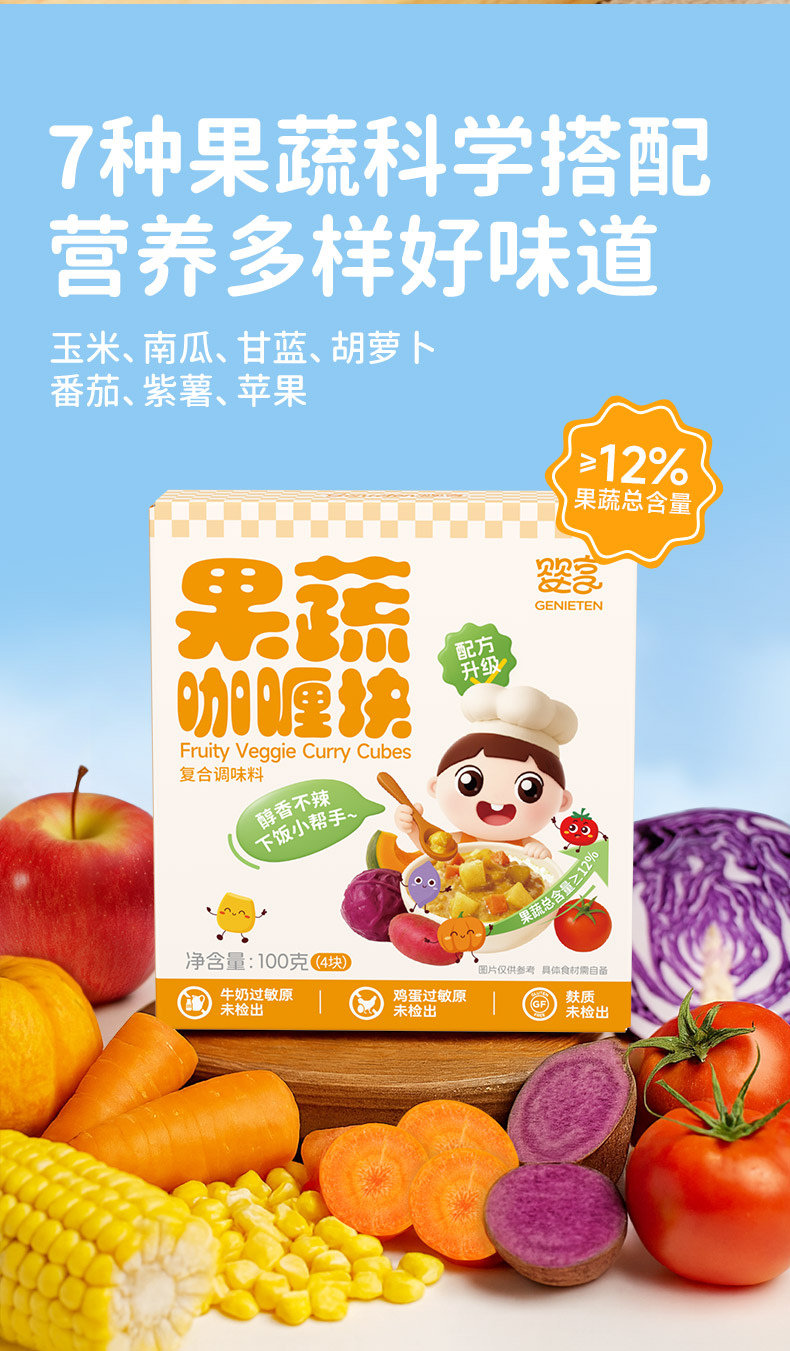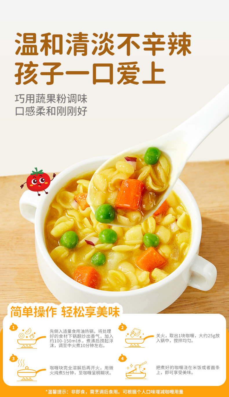 婴享无麸质无蛋奶果蔬咖喱块拌饭酱调料送婴幼儿敏宝辅食电子食谱