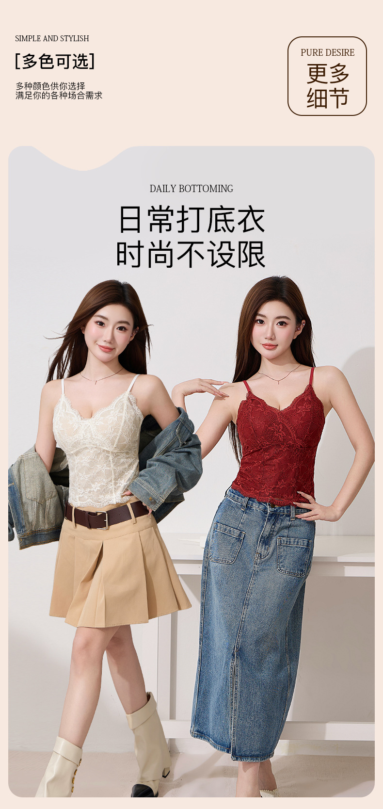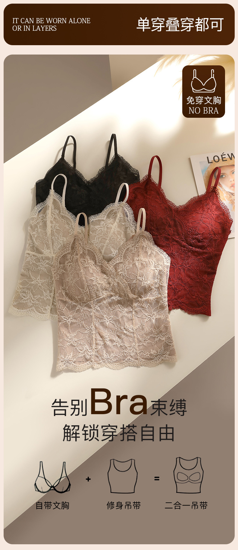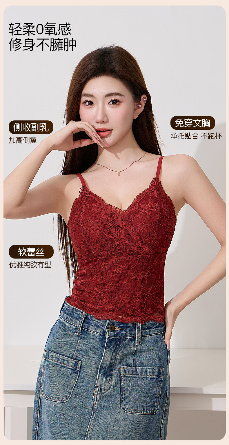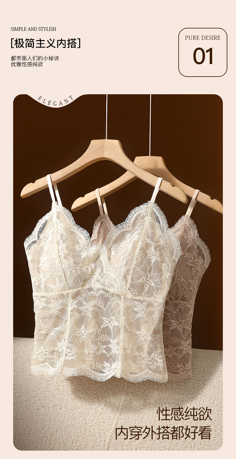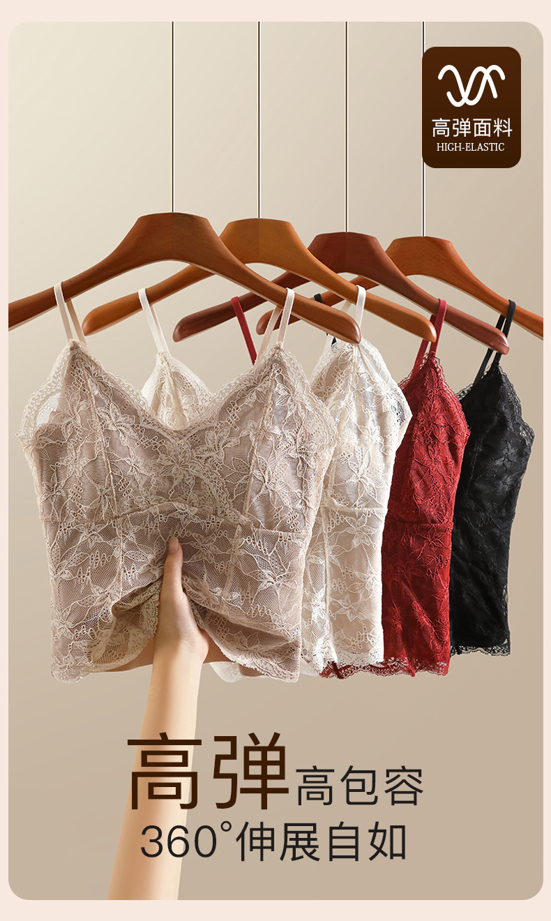 【2件装,纯欲小蛮腰】春夏新款纯欲风法式蕾丝吊带背心 性感纯欲 内搭外穿都好看 收副乳免穿文胸 优雅承托 高弹不紧勒 一字美背 时尚不设限