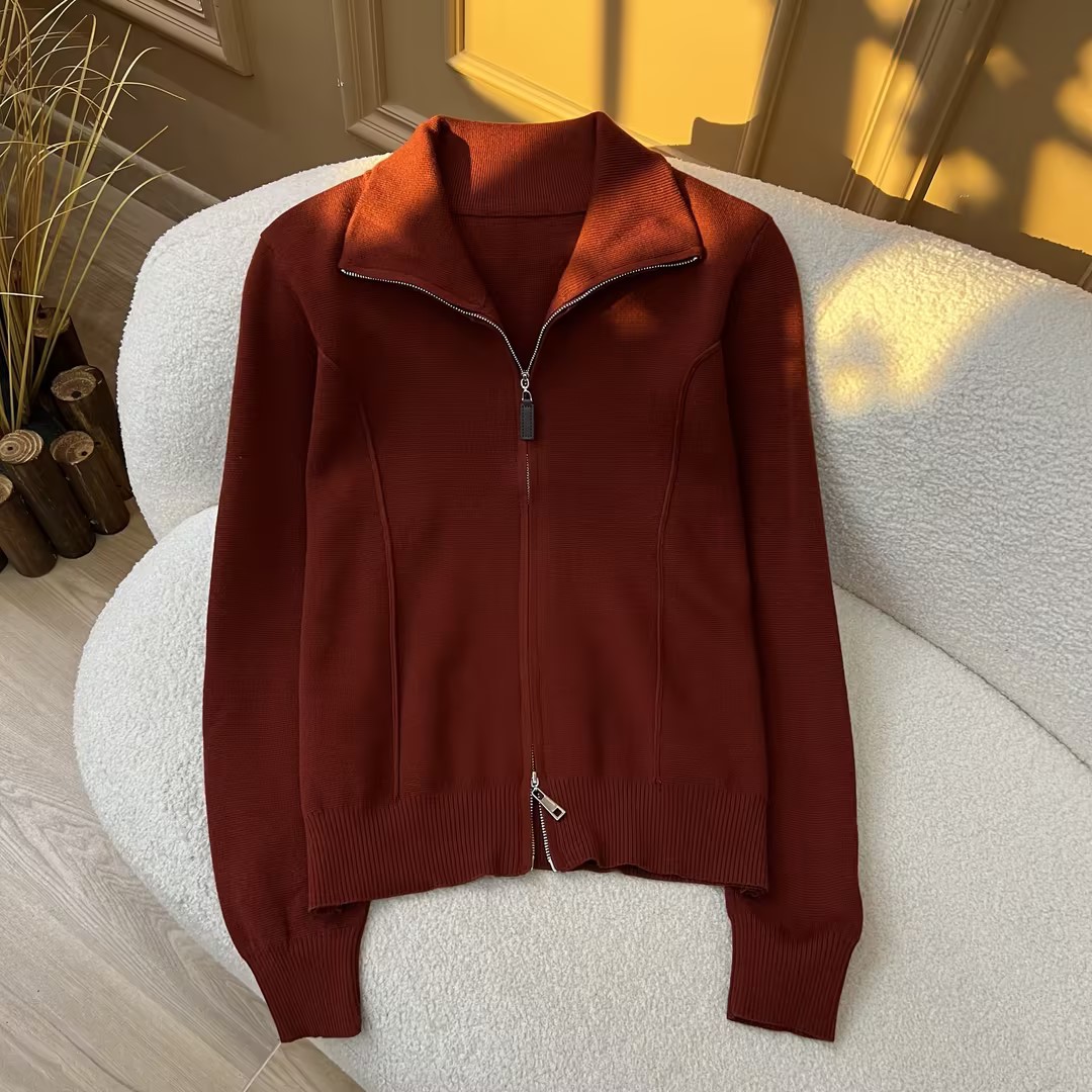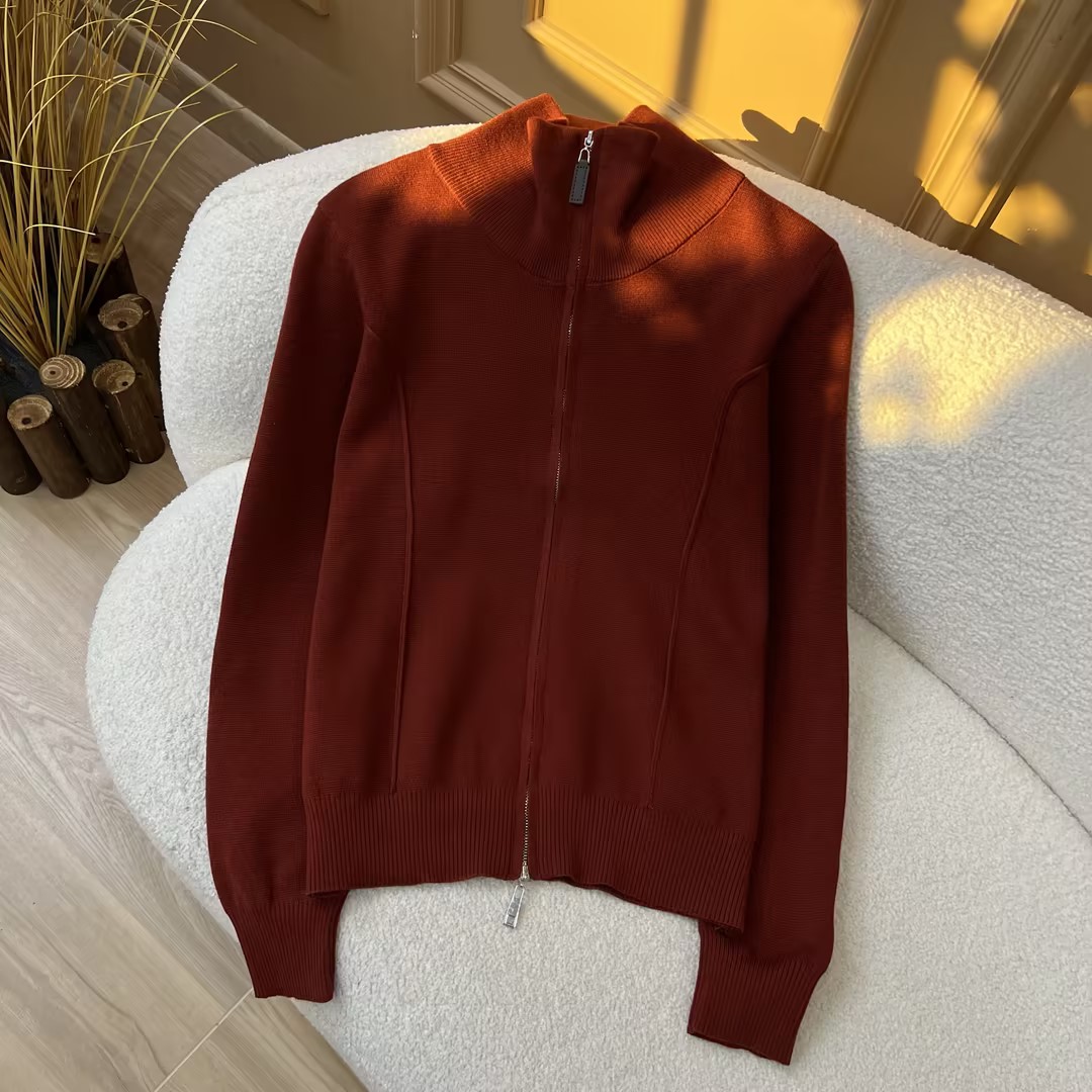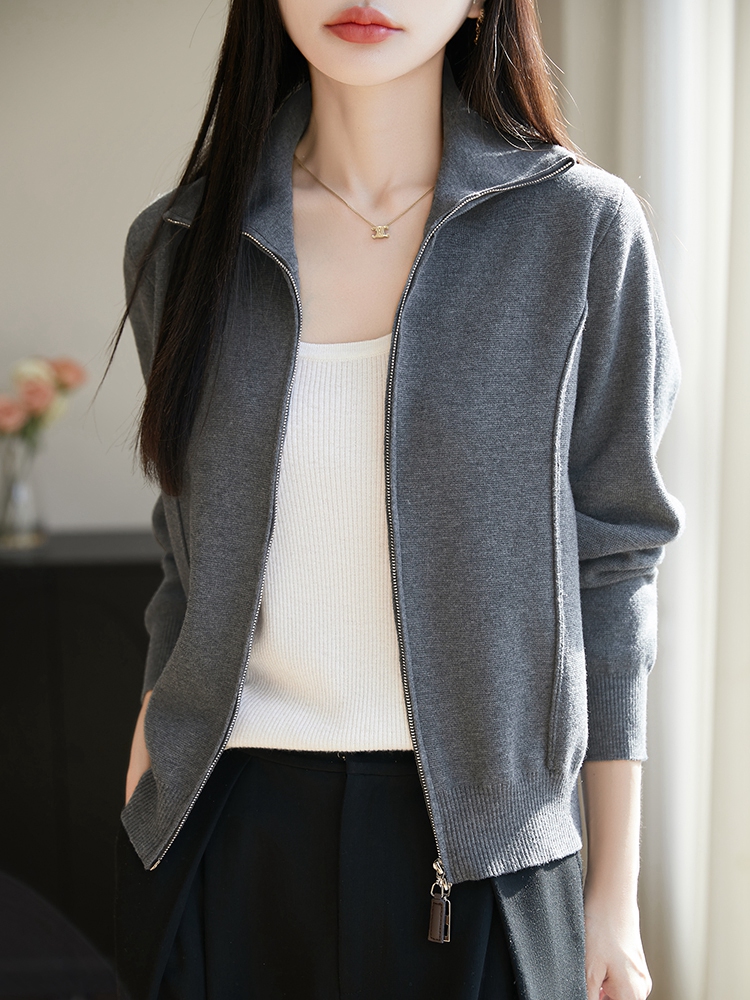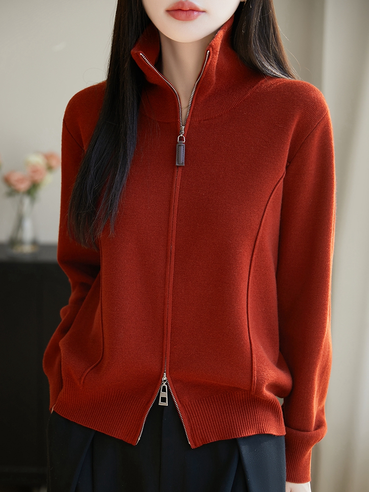 正肩显瘦~精仿羊毛双拉链立领开衫外套