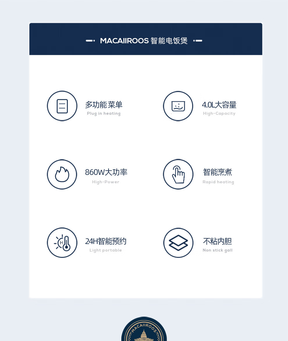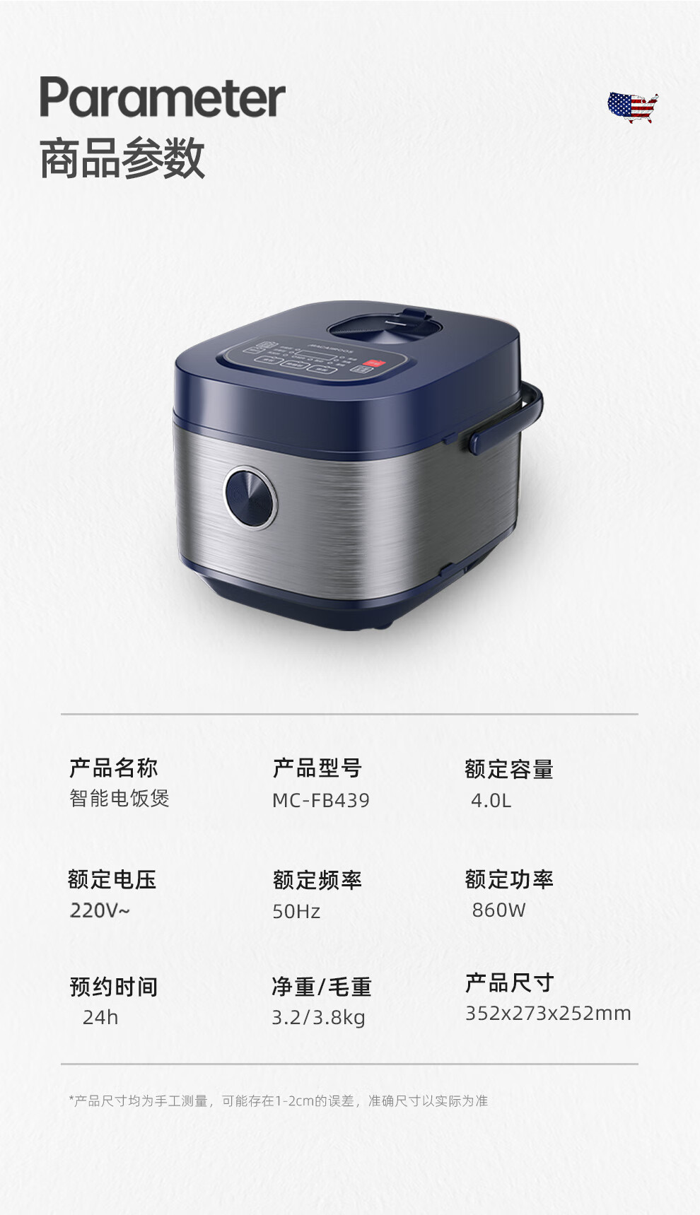 迈卡罗 电饭煲 4L智能电饭煲MC-FB439