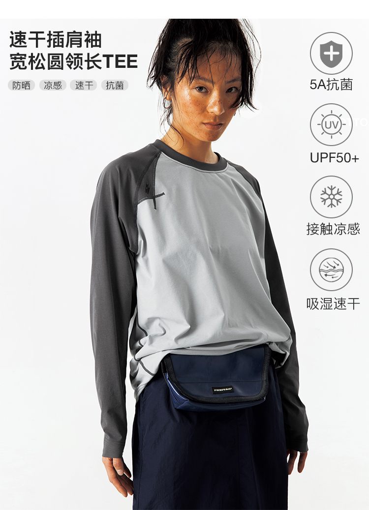 CryingCenter 经典男女情侣速干插肩袖宽松圆领打底TEE长袖