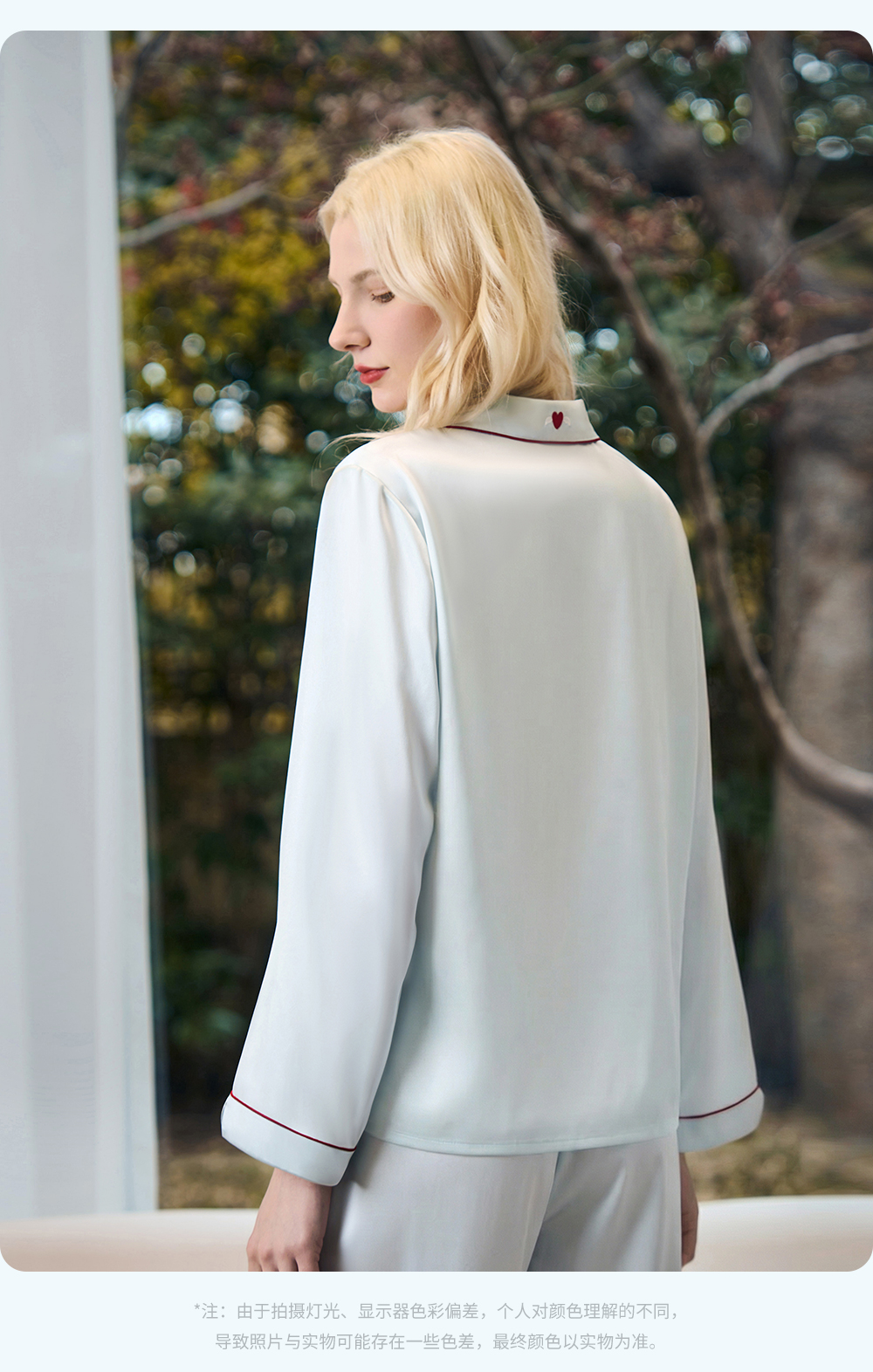 Solo seta22姆米玻尿酸真丝睡衣套装桑蚕丝长袖长裤刺绣家居服