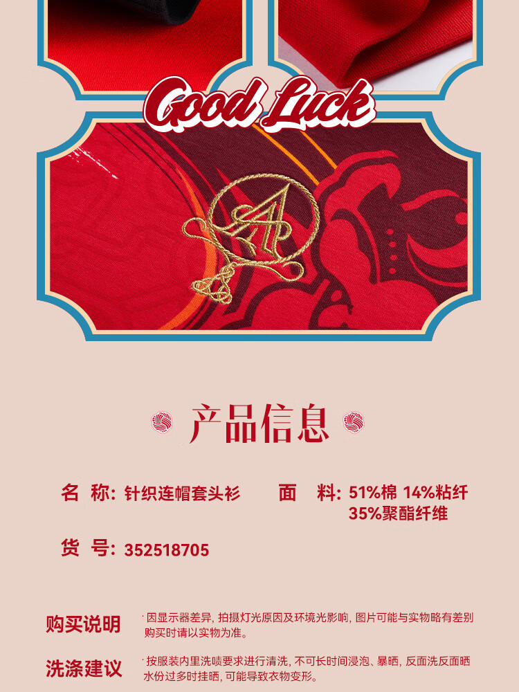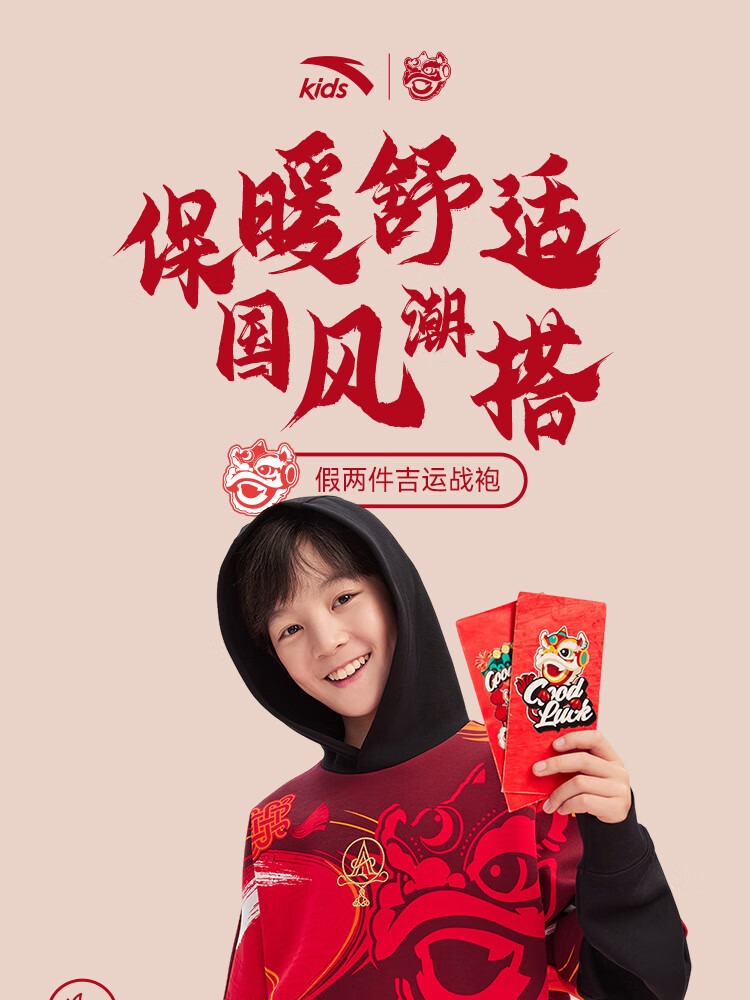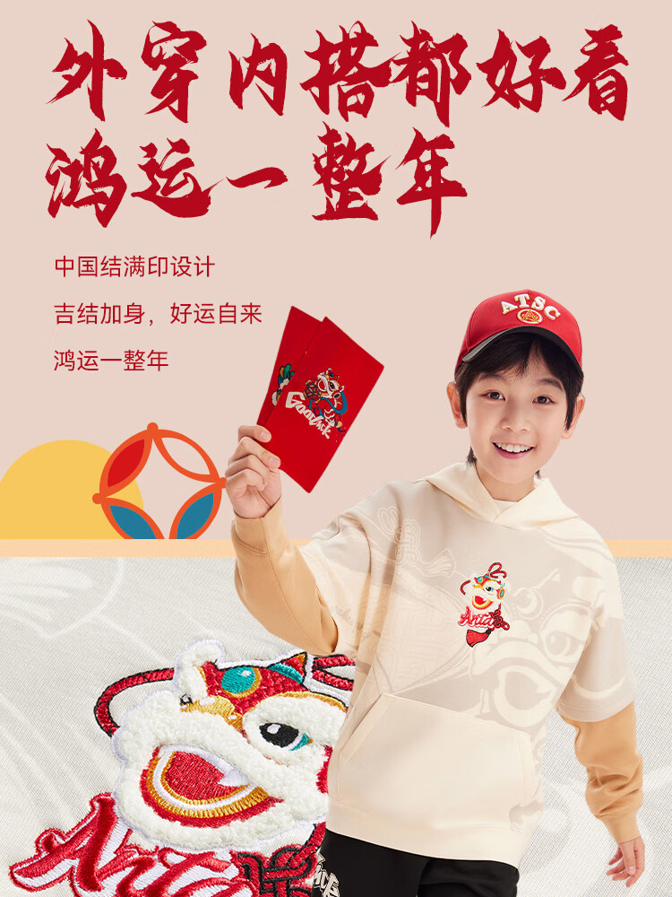 安踏儿童男大童针织连帽套头衫2025春季亲肤卫衣运动上衣352518705