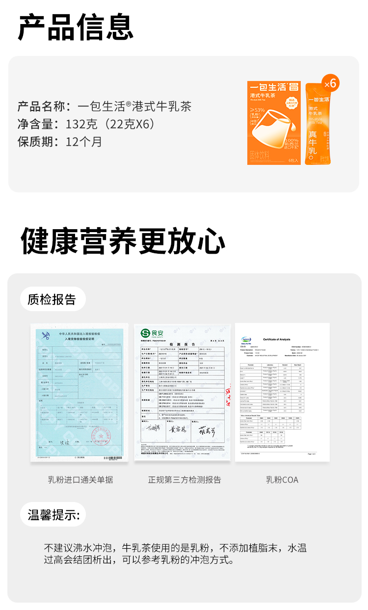 优选丨【奶茶0添加植脂末】一包生活港式牛乳茶阿萨姆风味奶茶健康冲泡下午茶饮品132g*3盒18杯