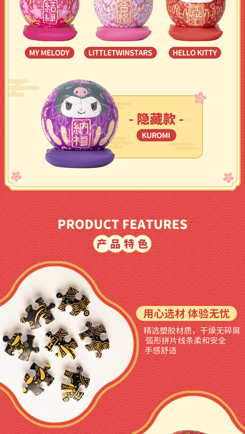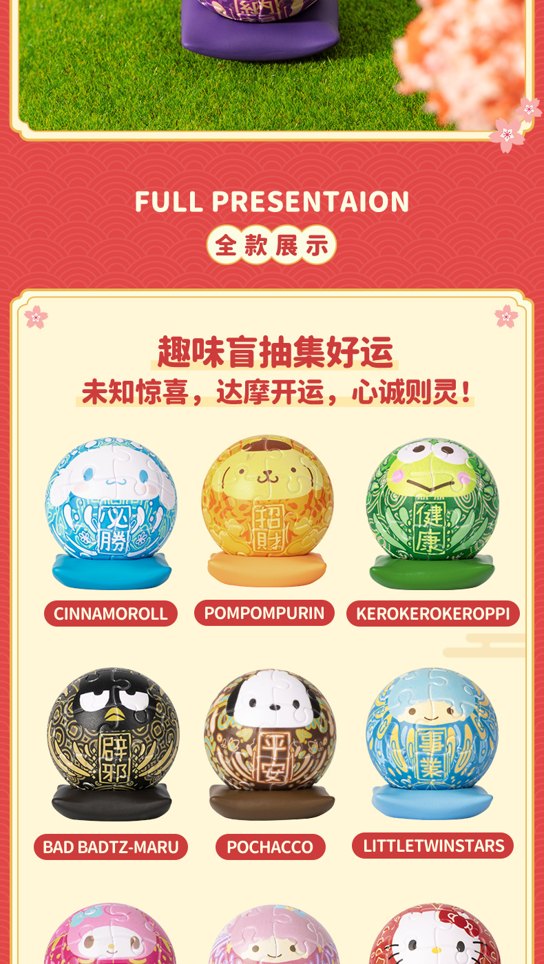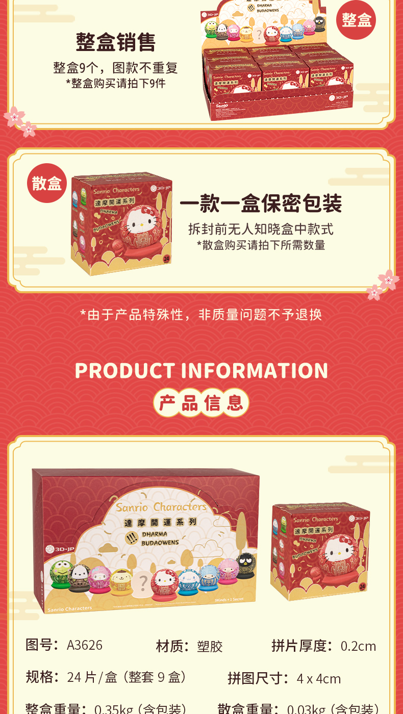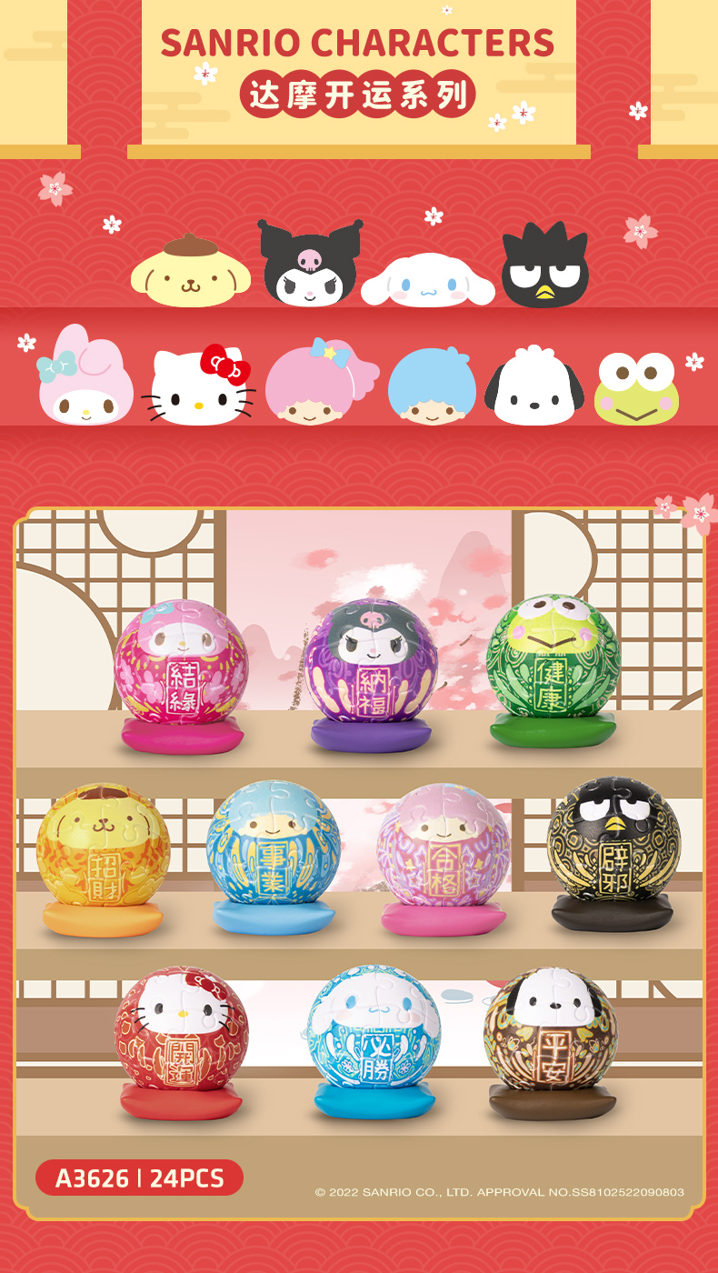 24片盲盒拼图 塑料摆件拼图A3626 Sanrio Characters 达摩开运系列