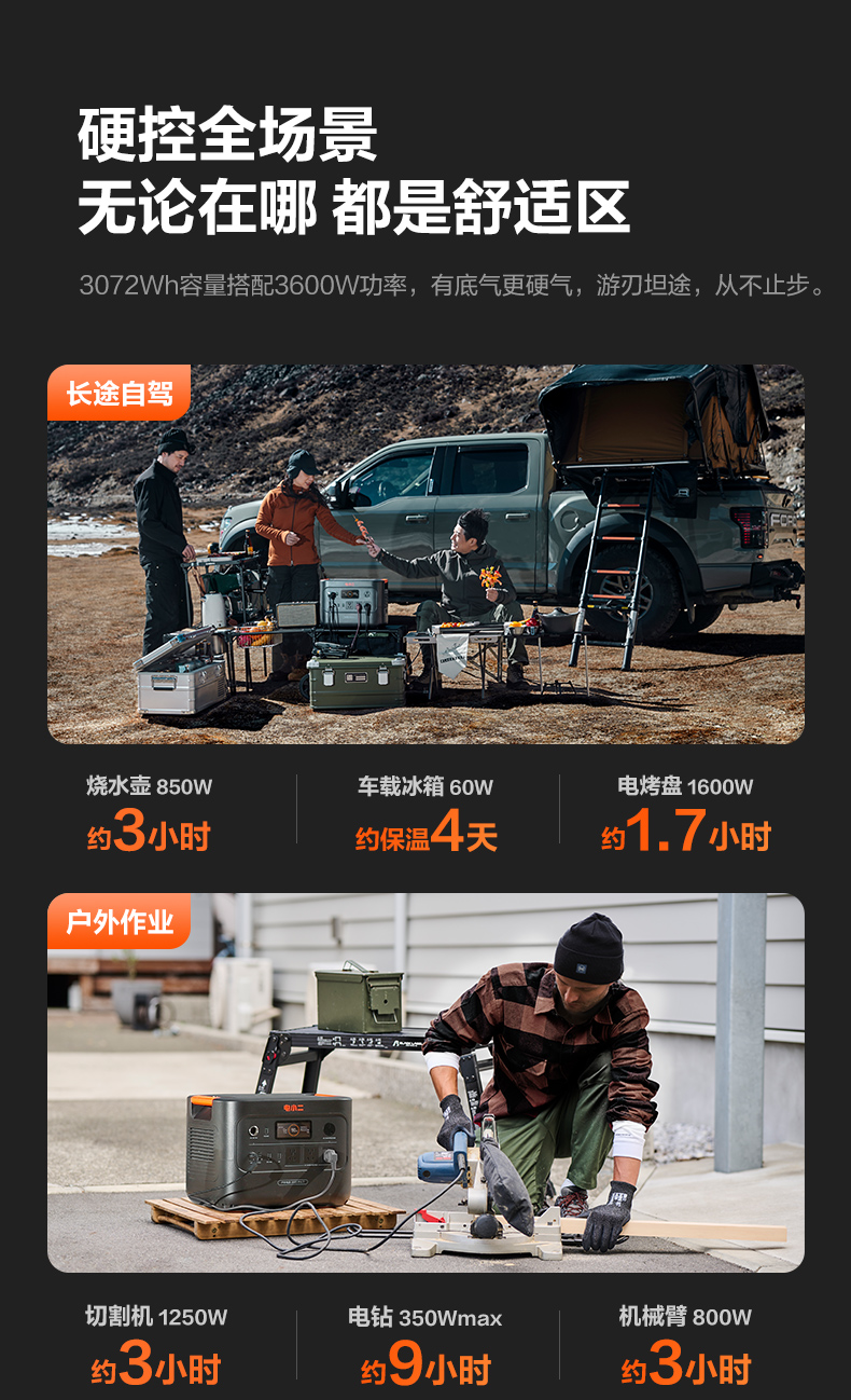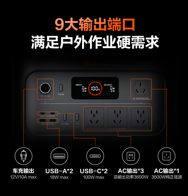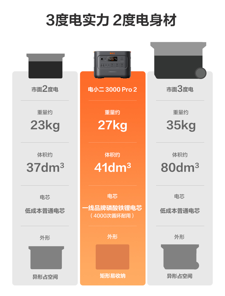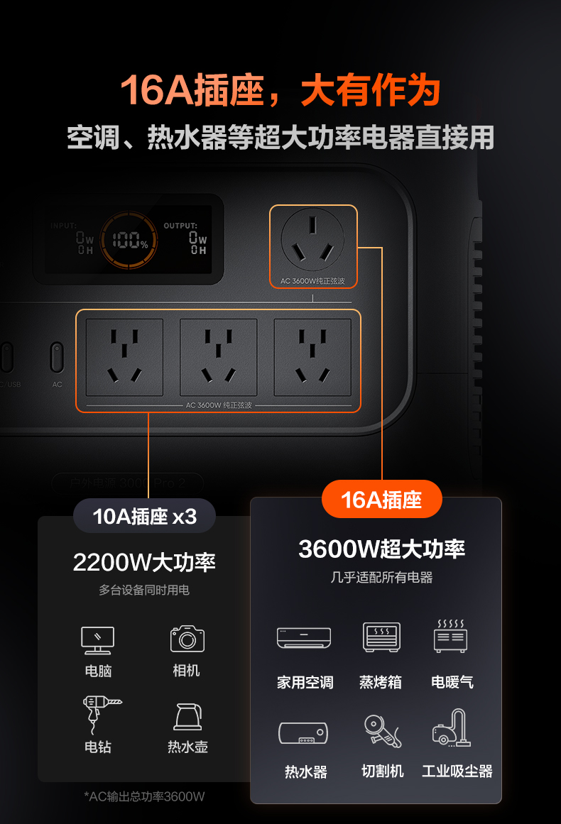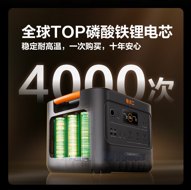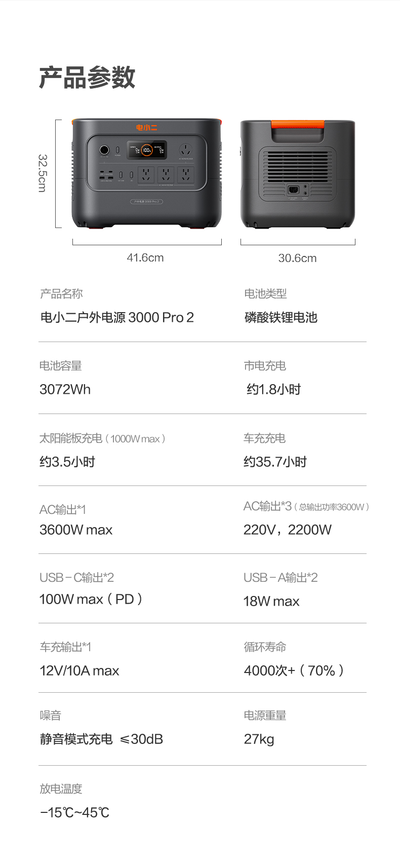 电小二【3度电新品3600W大功率】大容量快充户外电源220V移动电源户外作业停电应急备用储能电源3000Pro2
