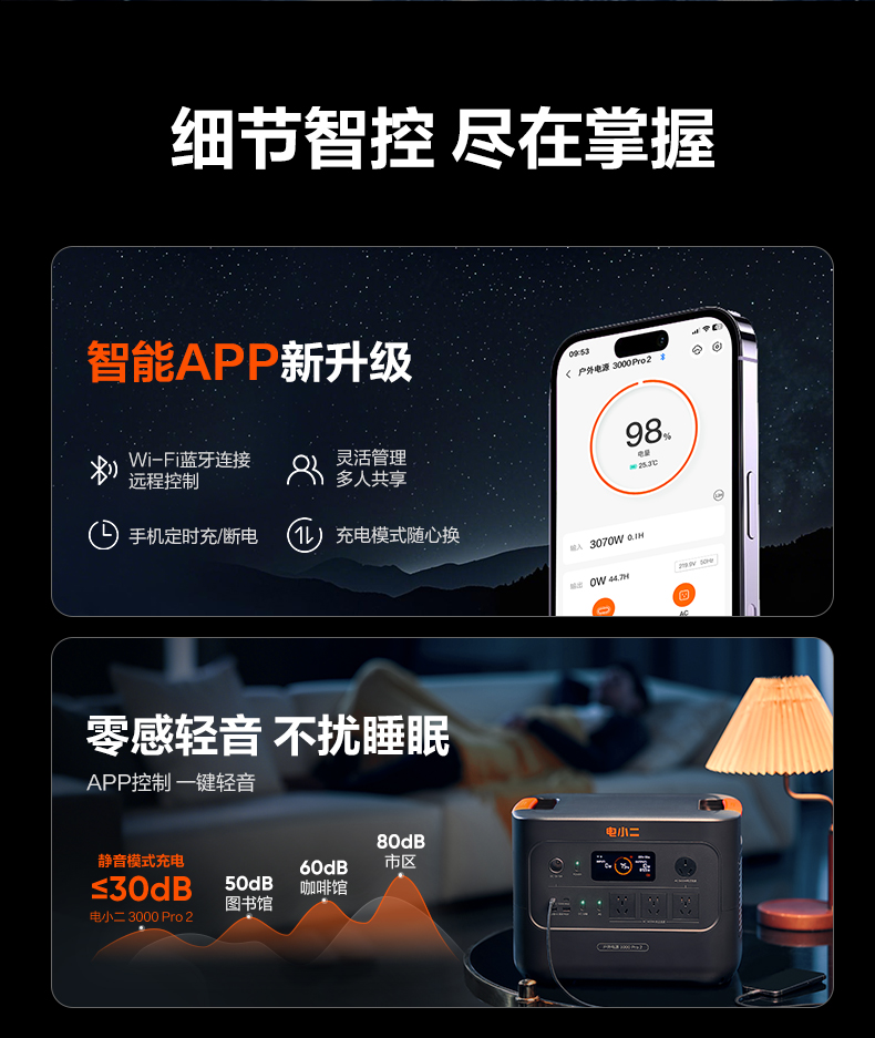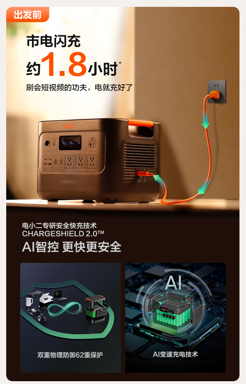 - 电小二户外电源是光充户外电源领导品牌,便携储能行业起草单位之一,致力于提供可持续便携绿色能源解决方案。