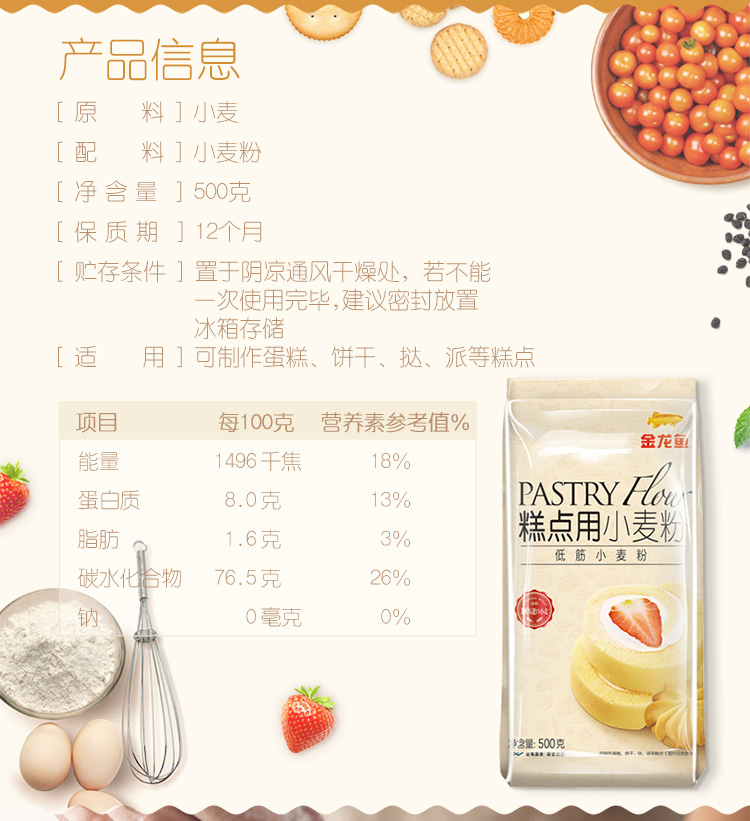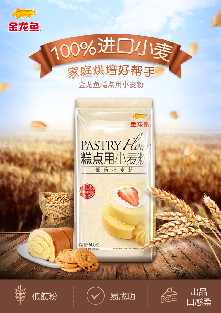 【15.9任选3件】金龙鱼糕点用低筋小麦粉500G