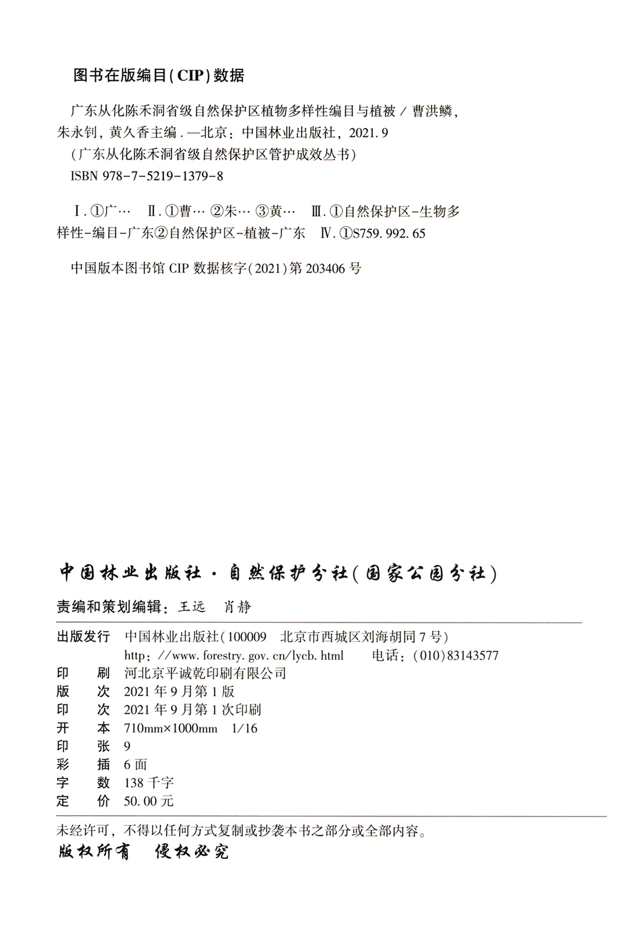 广东从化陈禾洞省级自然保护区植物多样性编目与植被 1379 曹洪麟//朱永钊//黄久香 中国林业出版社