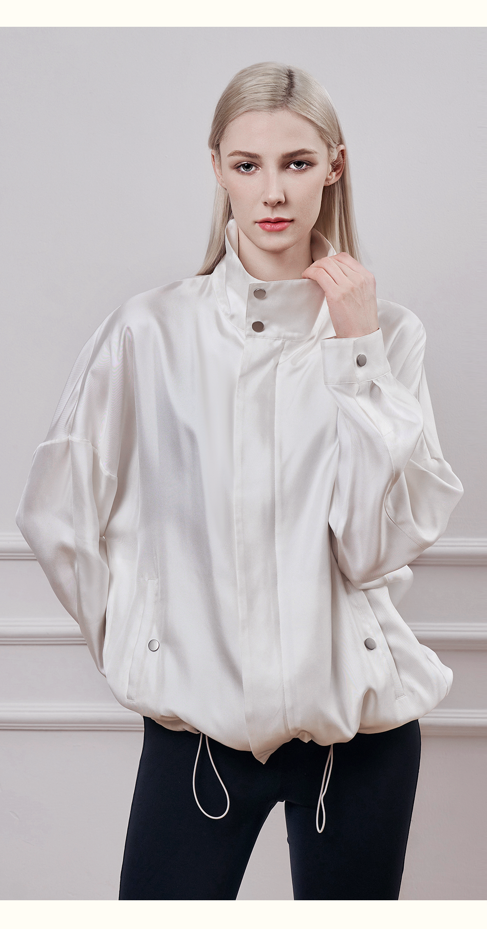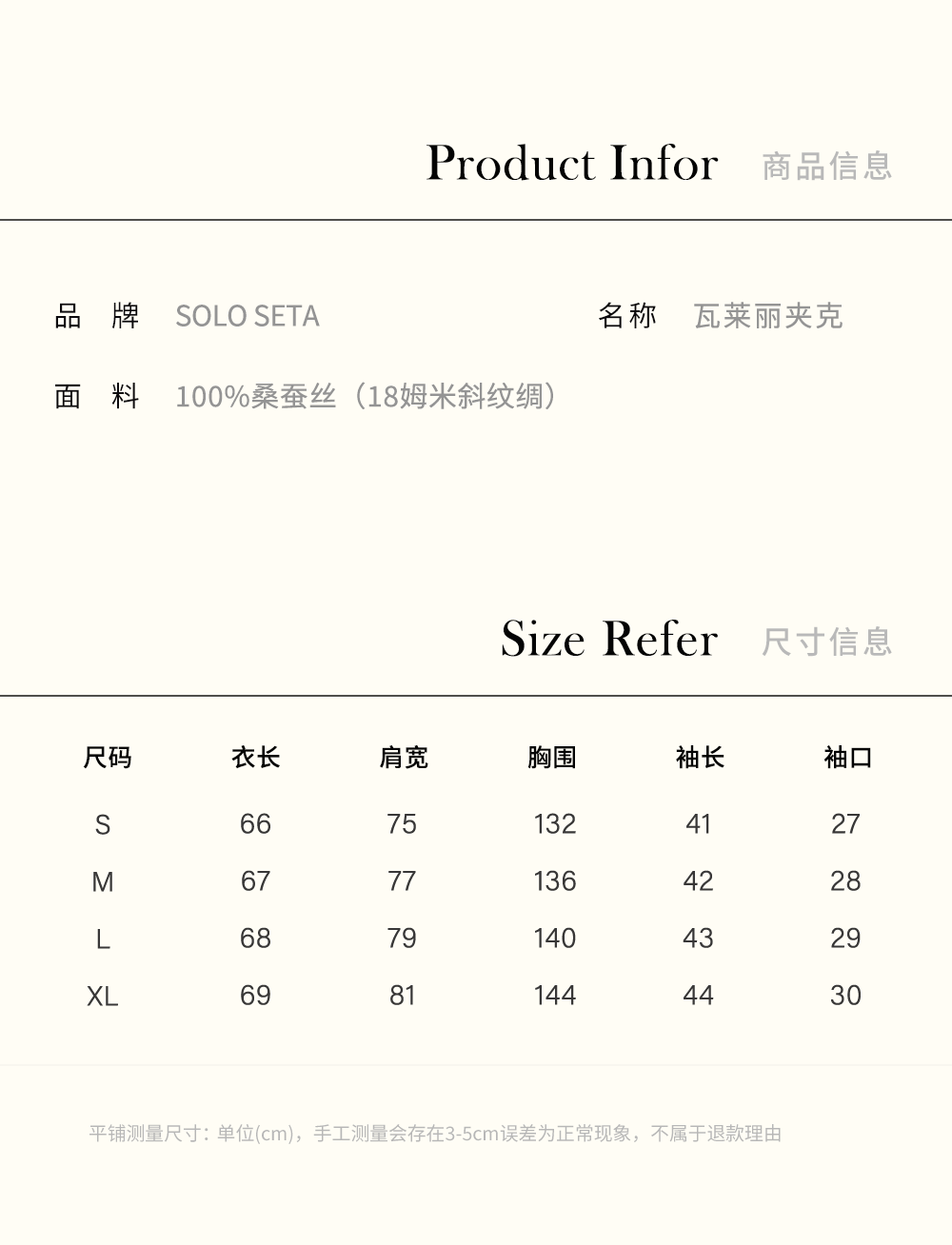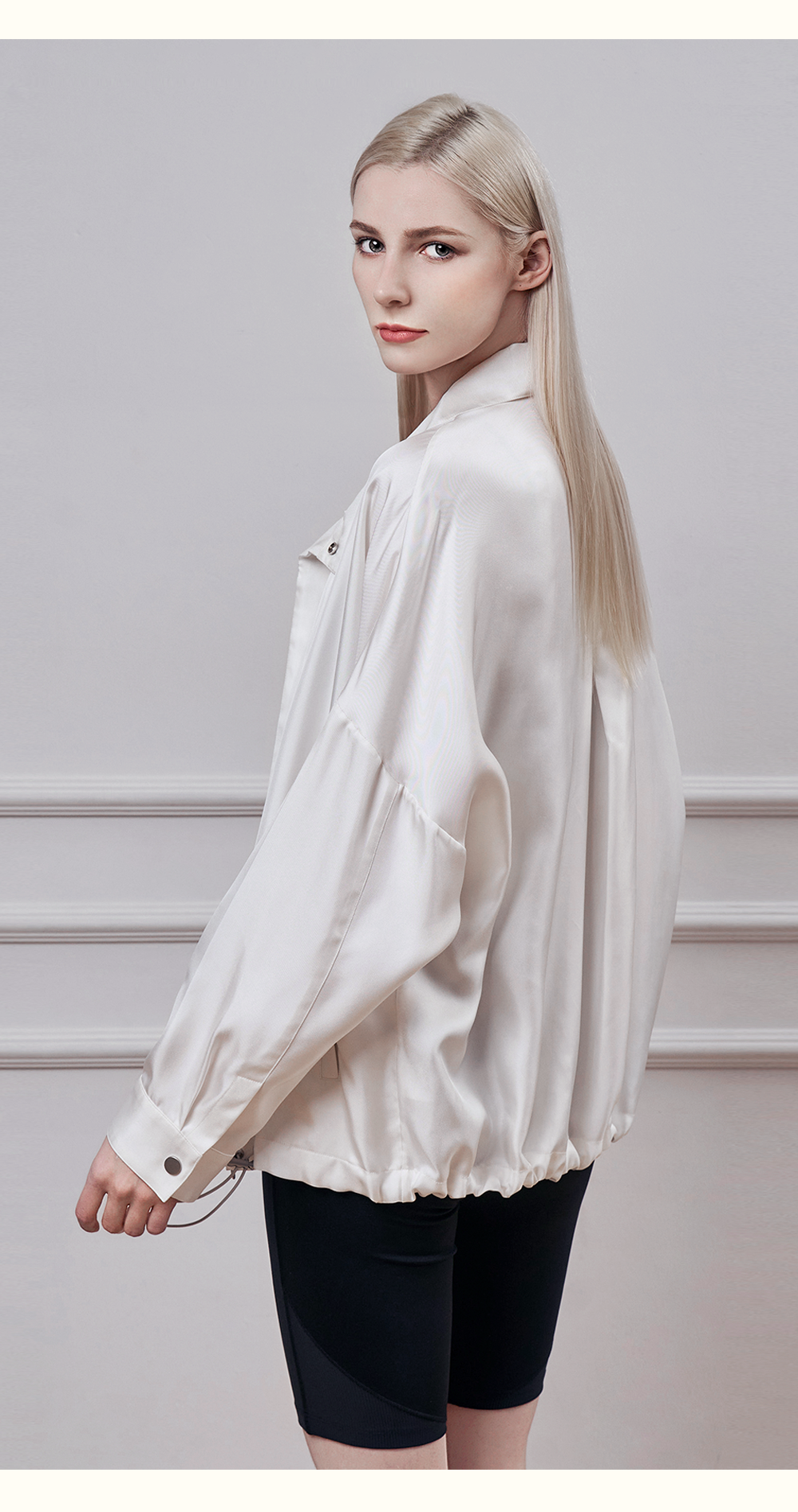 Solo seta女士真丝纯色睡衣上装桑蚕丝夹克2025年秋季轻奢高级感