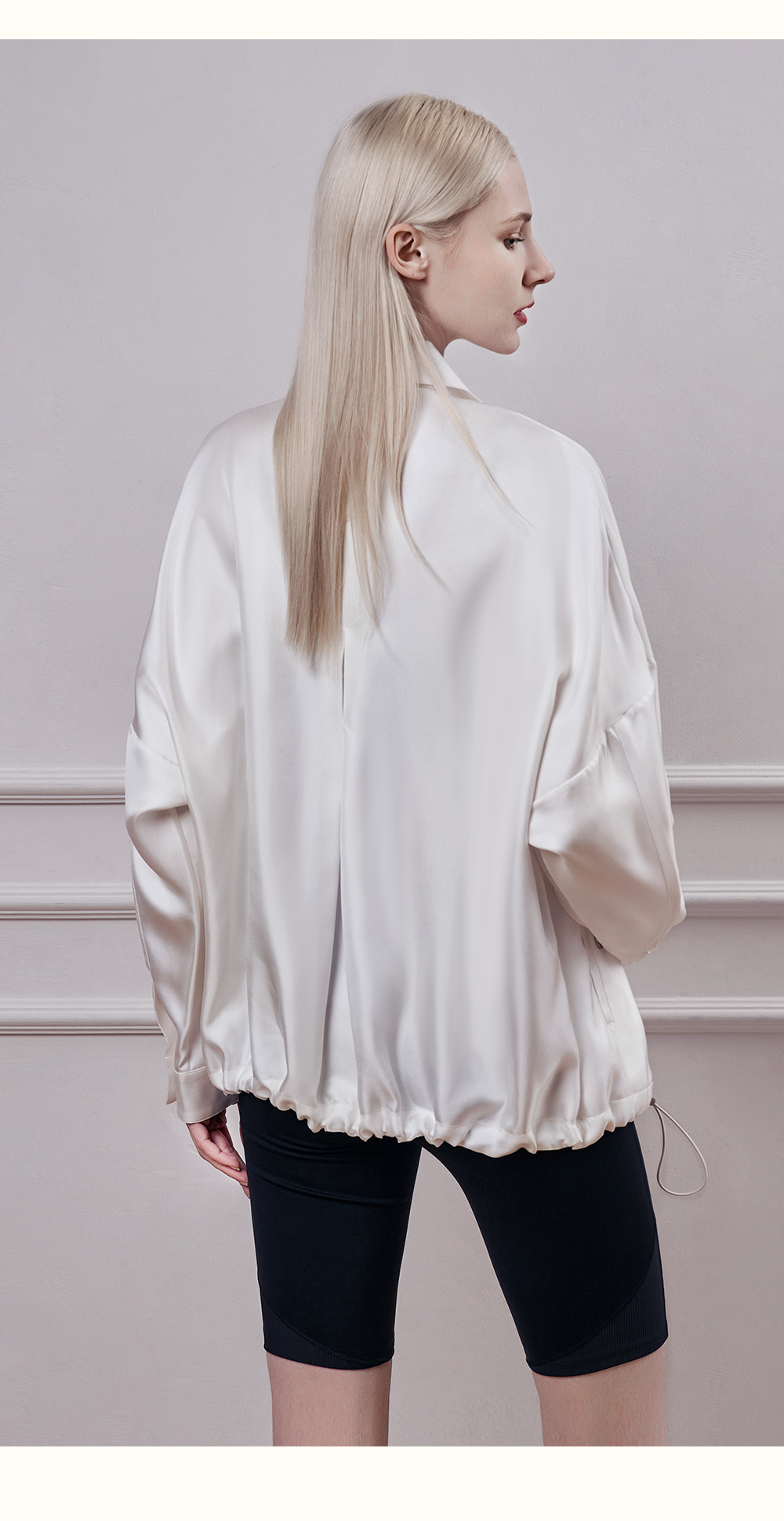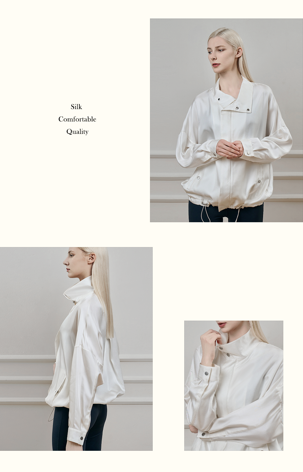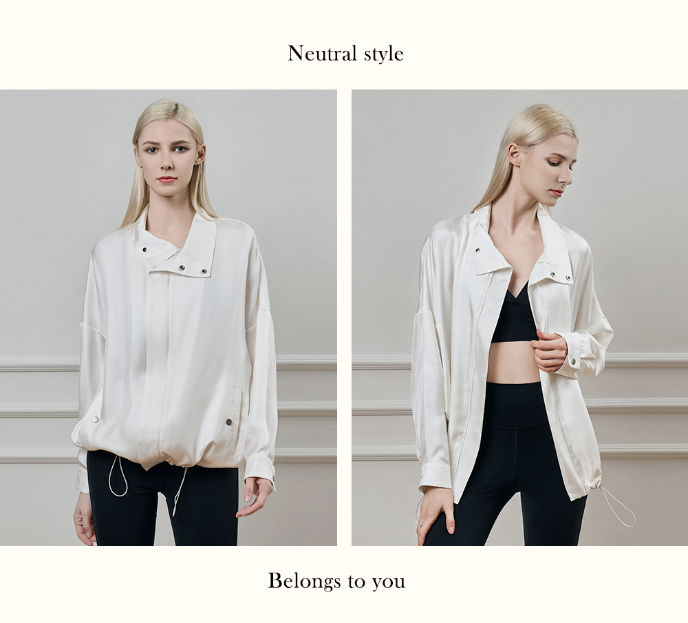 Solo seta女士真丝纯色睡衣上装桑蚕丝夹克2025年秋季轻奢高级感