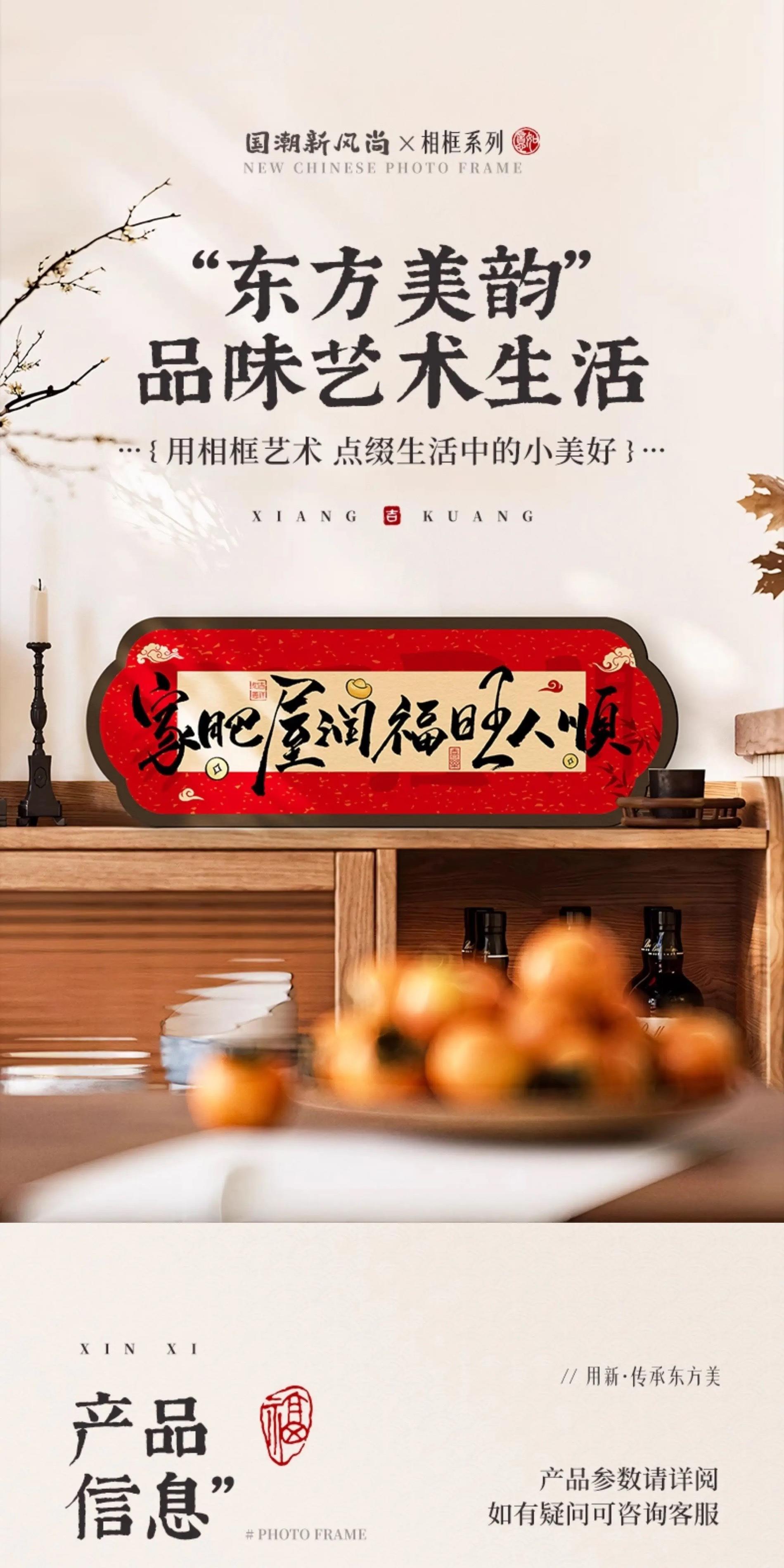【家肥屋润】祝福装饰摆件卧室书法相框喜庆装饰画客厅电视柜摆台