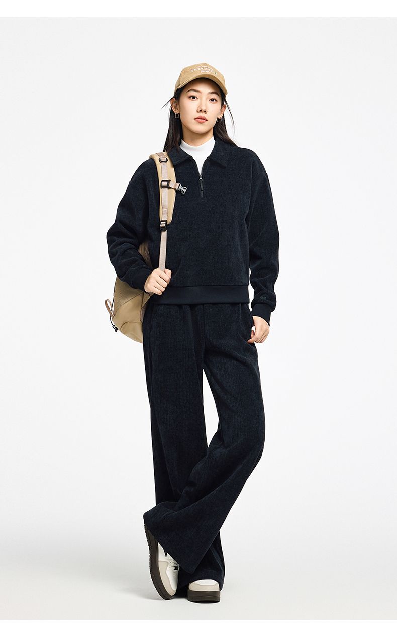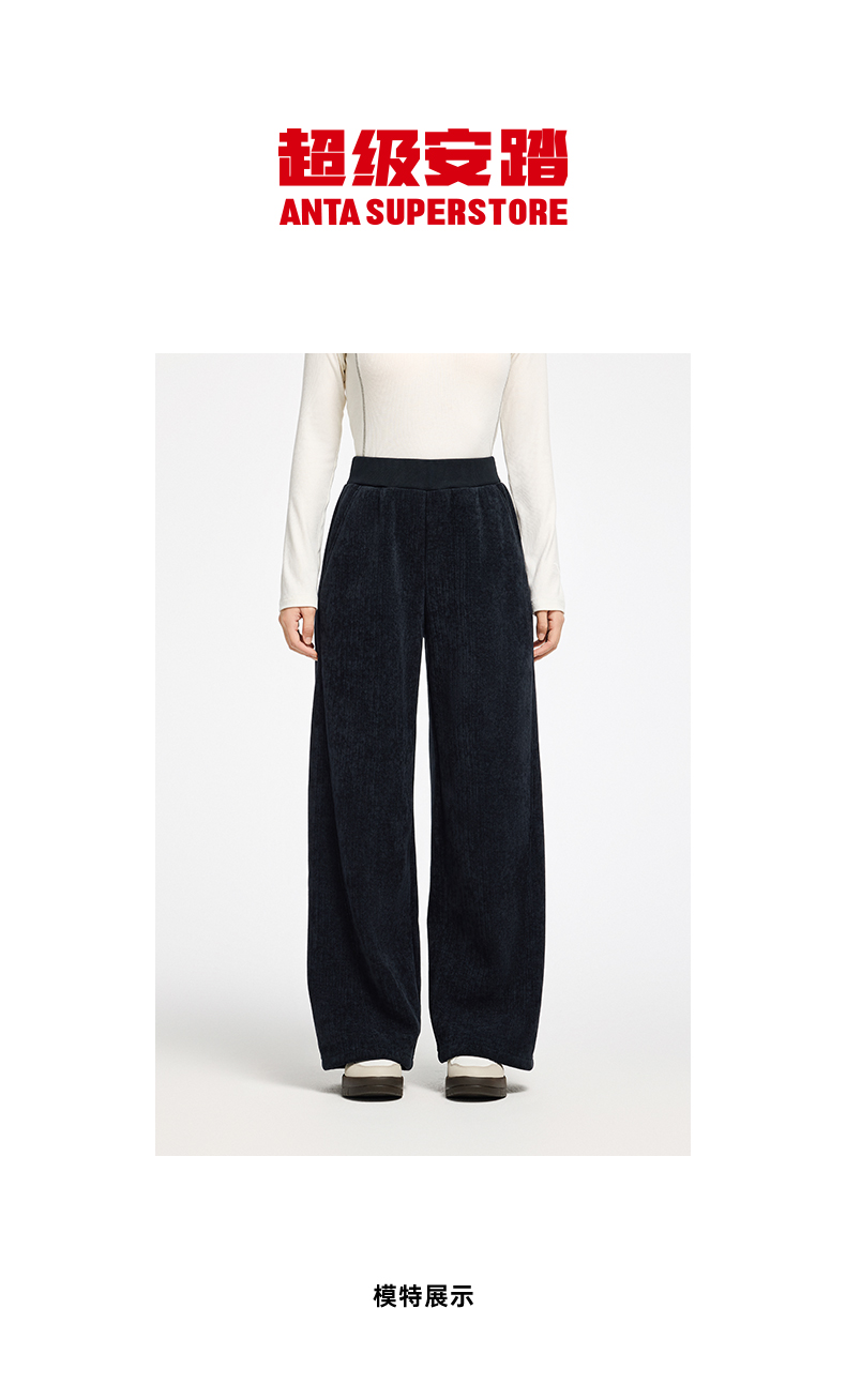 超级安踏加绒运动裤女裤秋冬保暖雪尼尔时尚阔腿裤休闲长裤子女162548303U