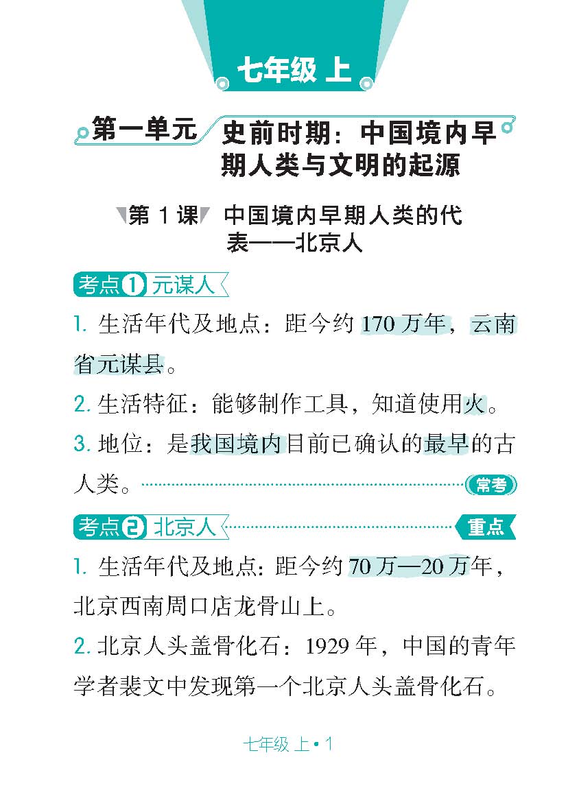 第 1 课 中国境内早期人类的代表——北京人 ...............1
