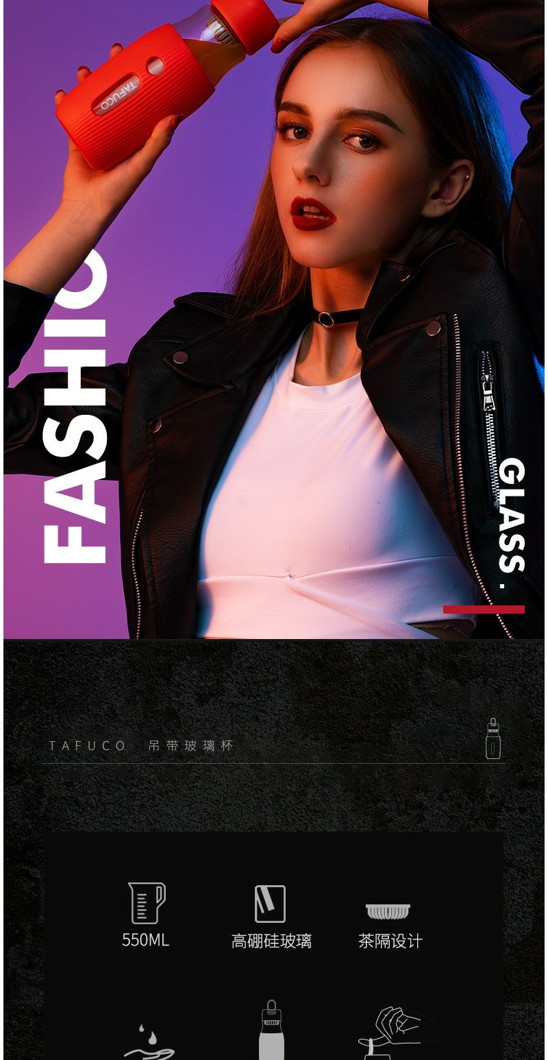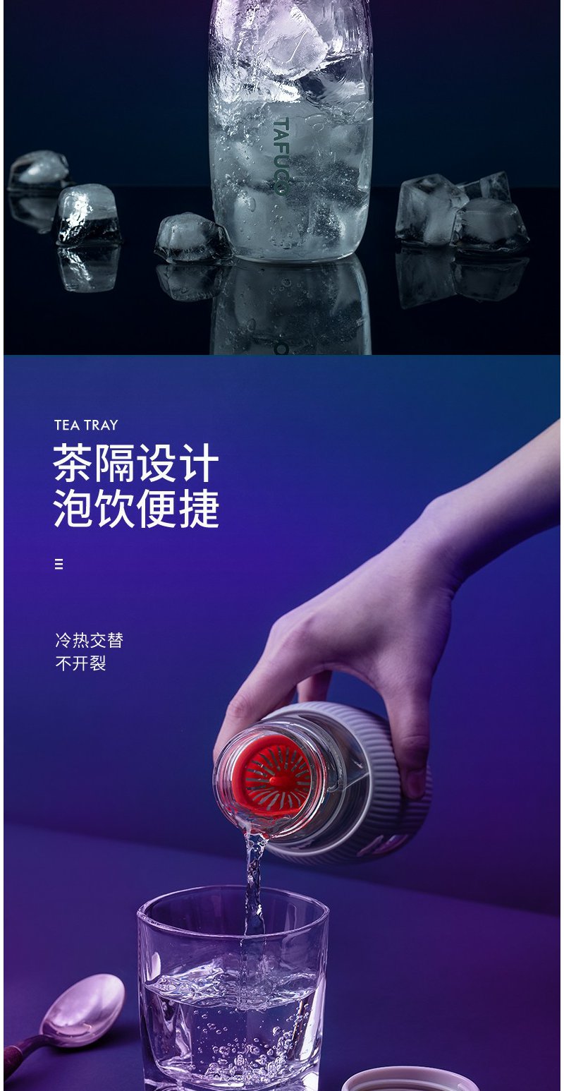 泰福高(TAFUCO) 玻璃杯 大容量茶水分离水杯 550ml