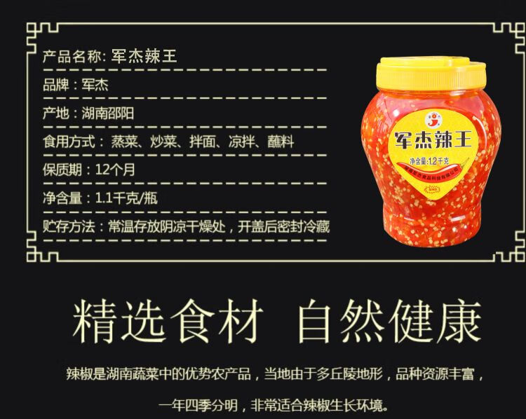【仅供集采】小米椒特辣剁辣椒酱军杰剁椒2KG*6瓶 箱装