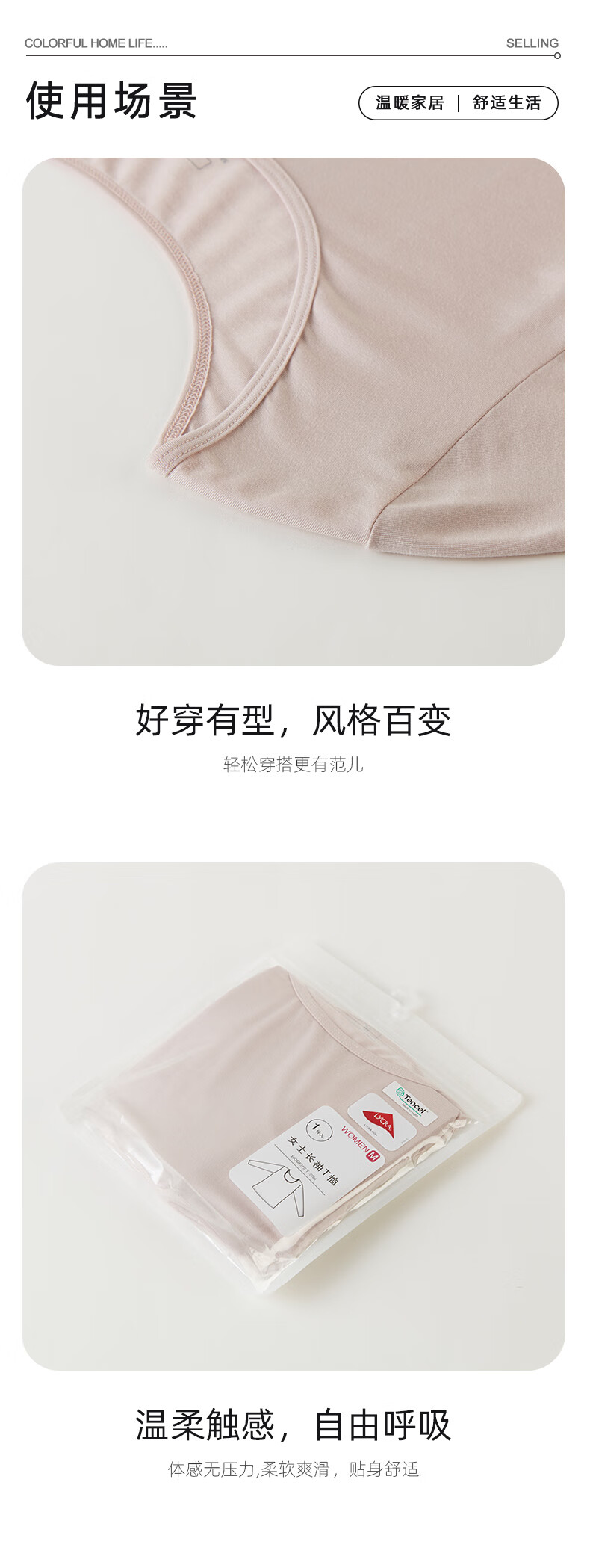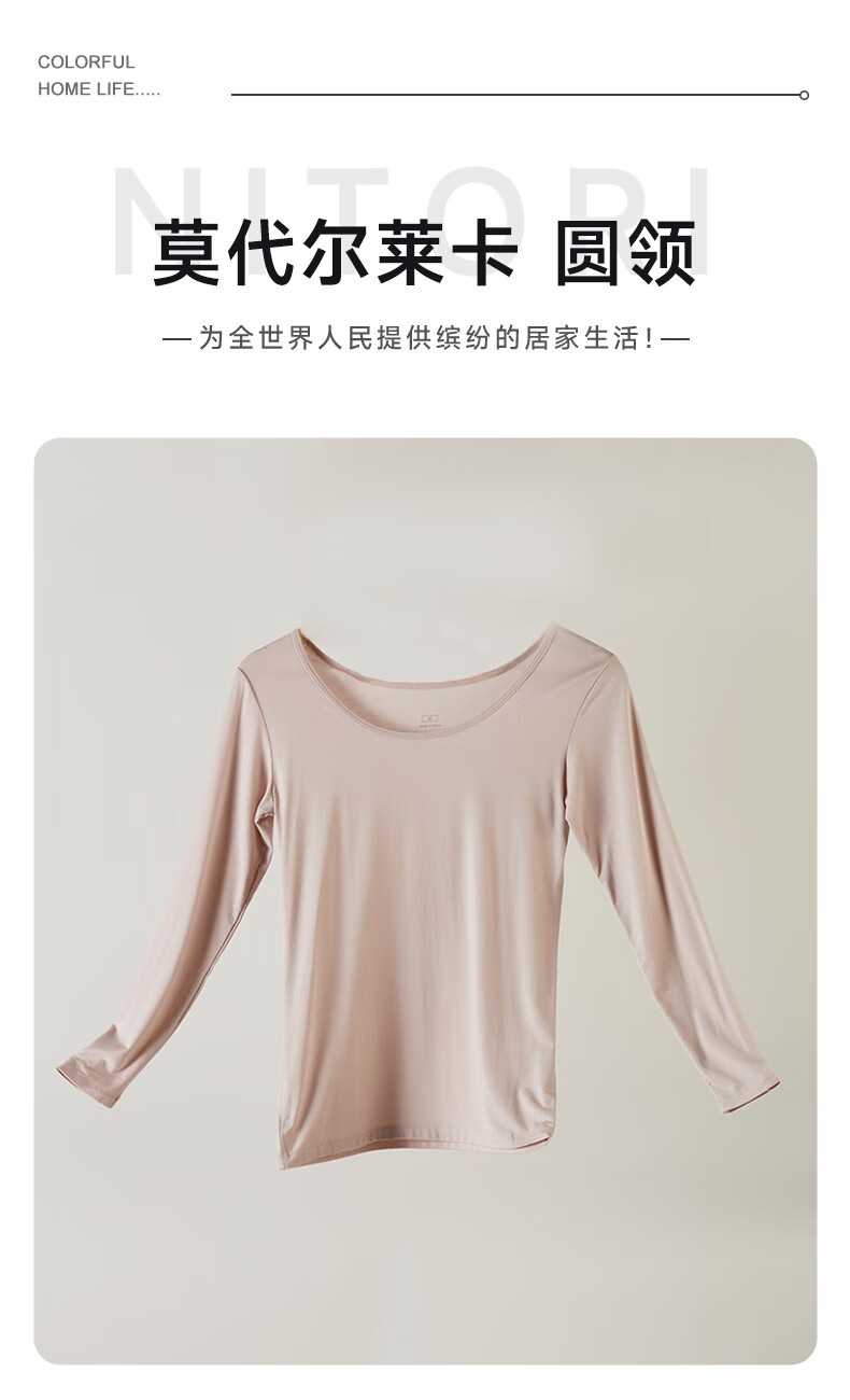 圆领透气纯色上衣T恤宽松 女士长袖 莫代尔莱卡