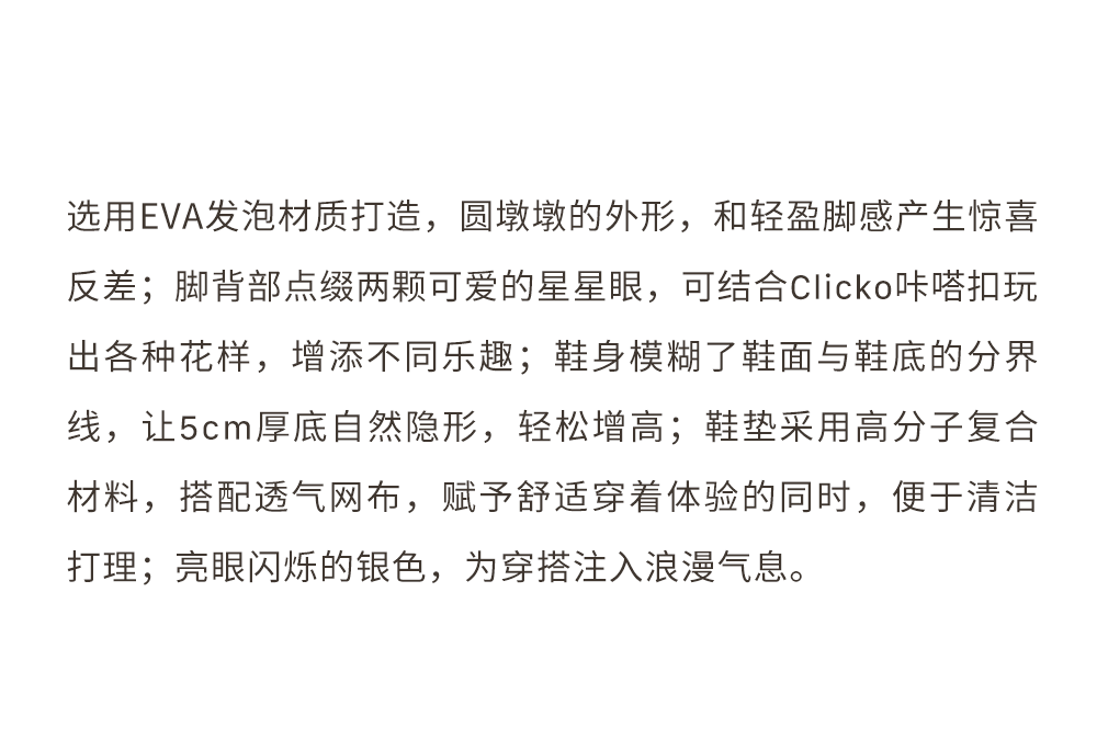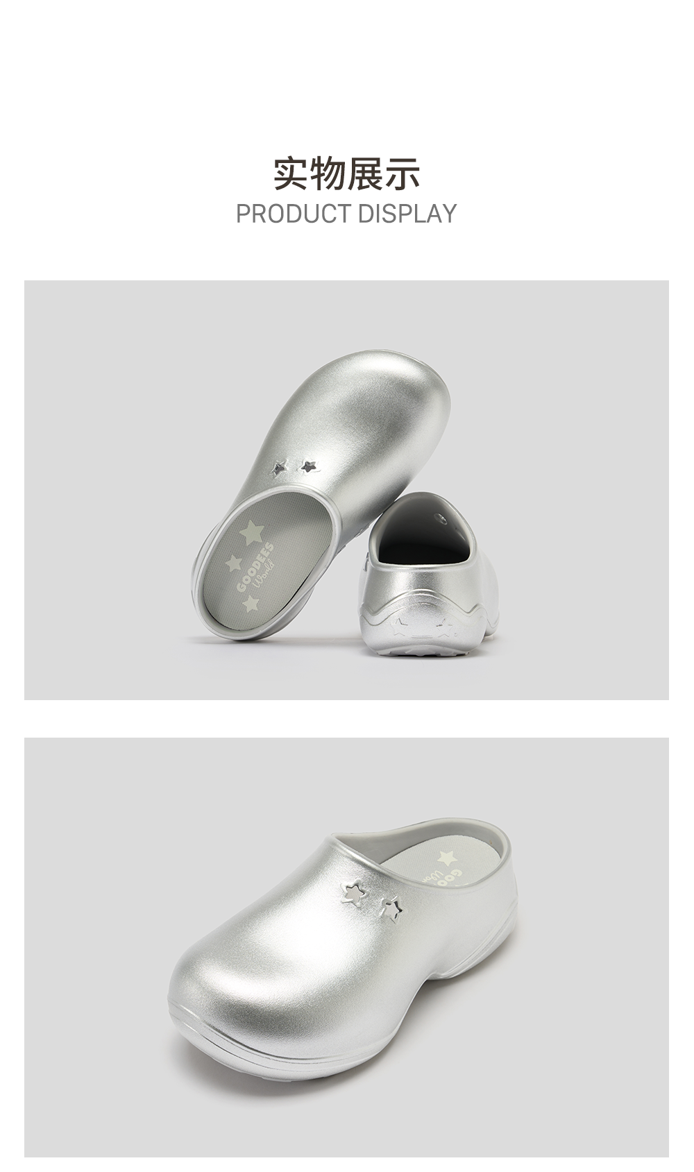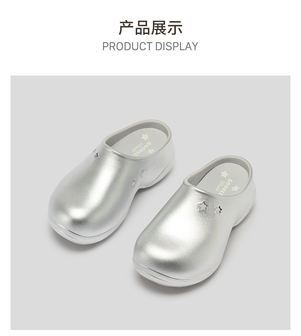 GOODBAI GOODEES Star Fluffy银色星星鞋可爱厚底拖鞋