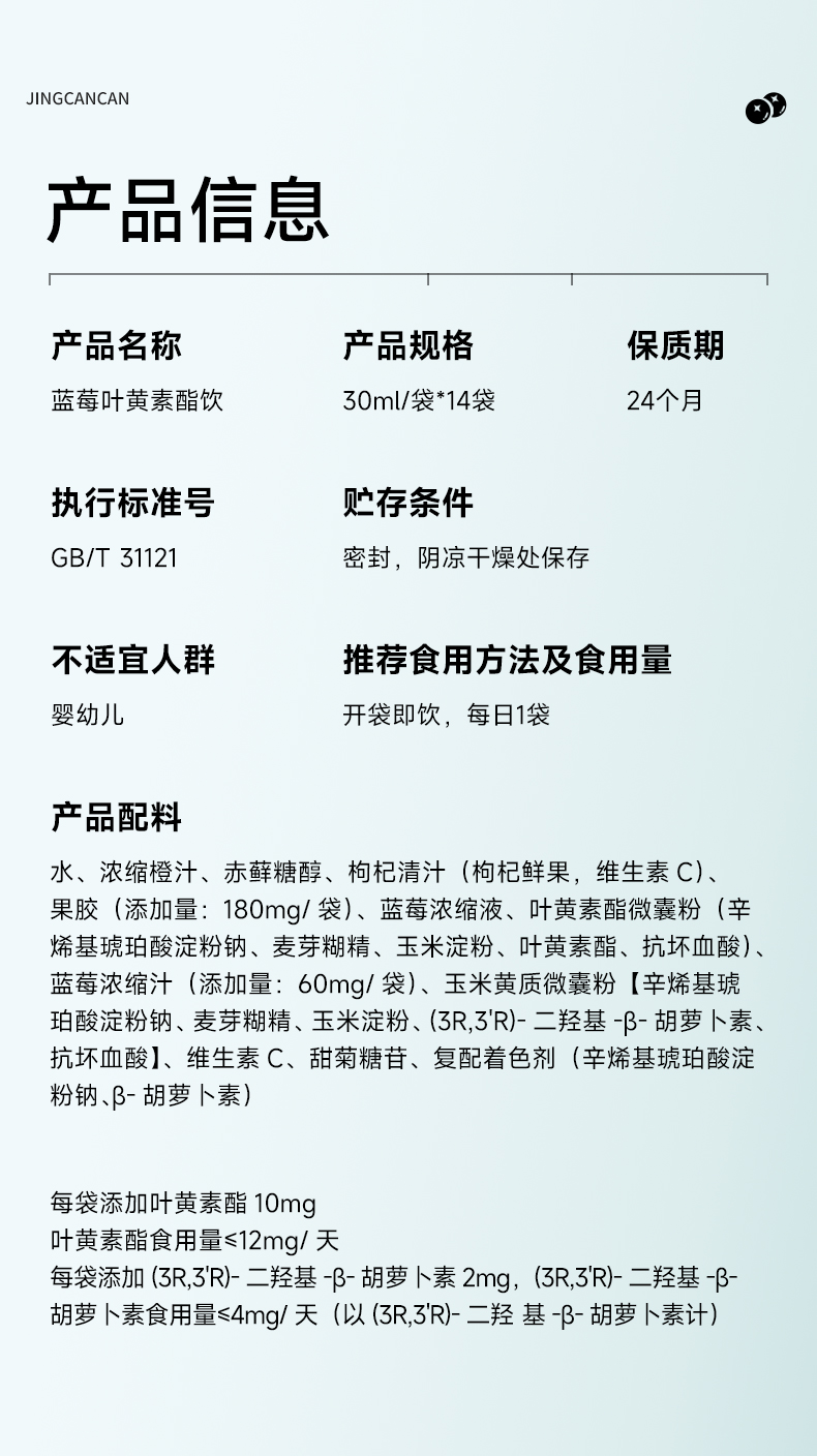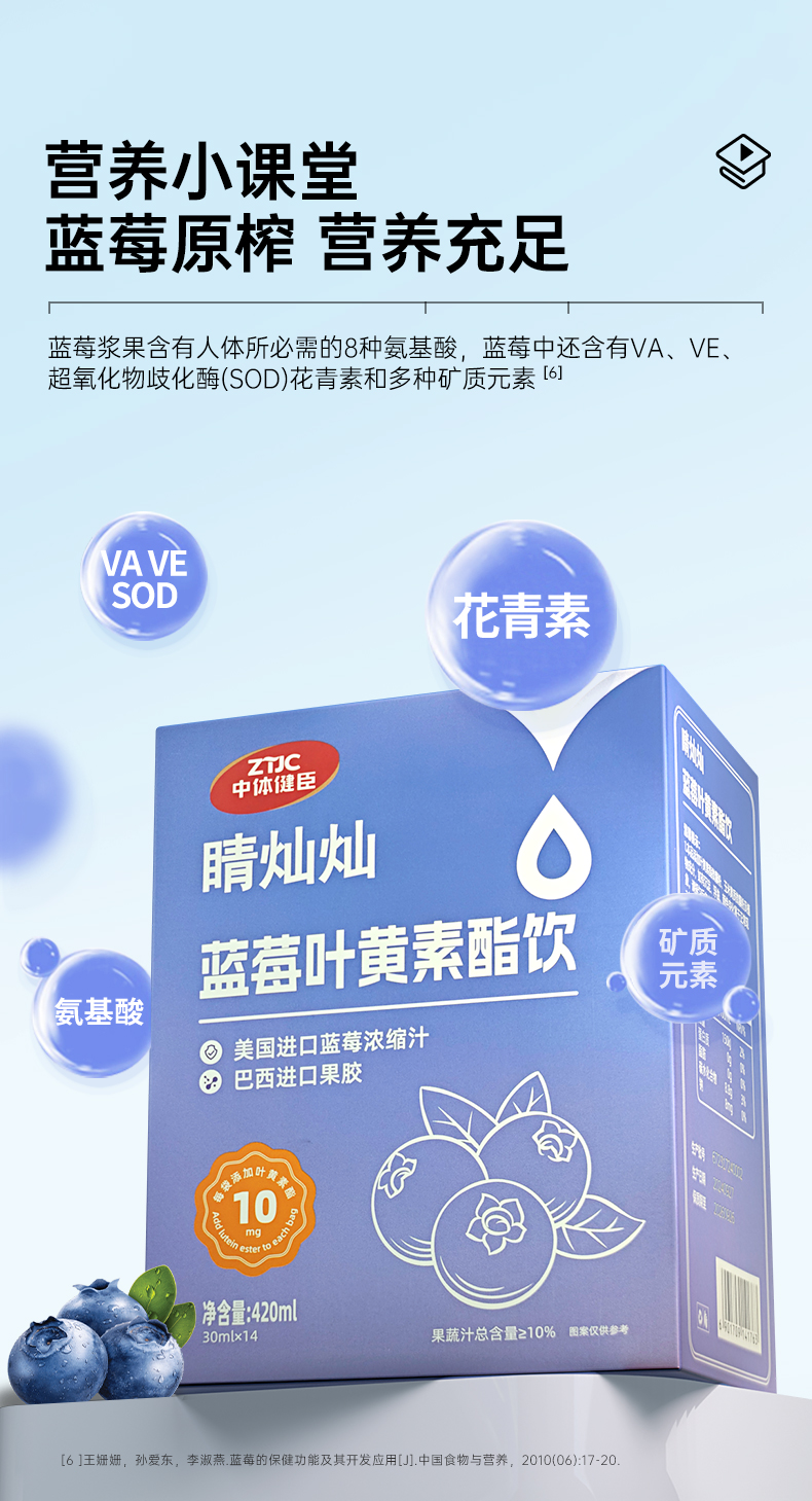 中体健臣蓝莓叶黄素酯饮睛灿灿成人中老年上班族视力模糊儿童青少年 商品图4