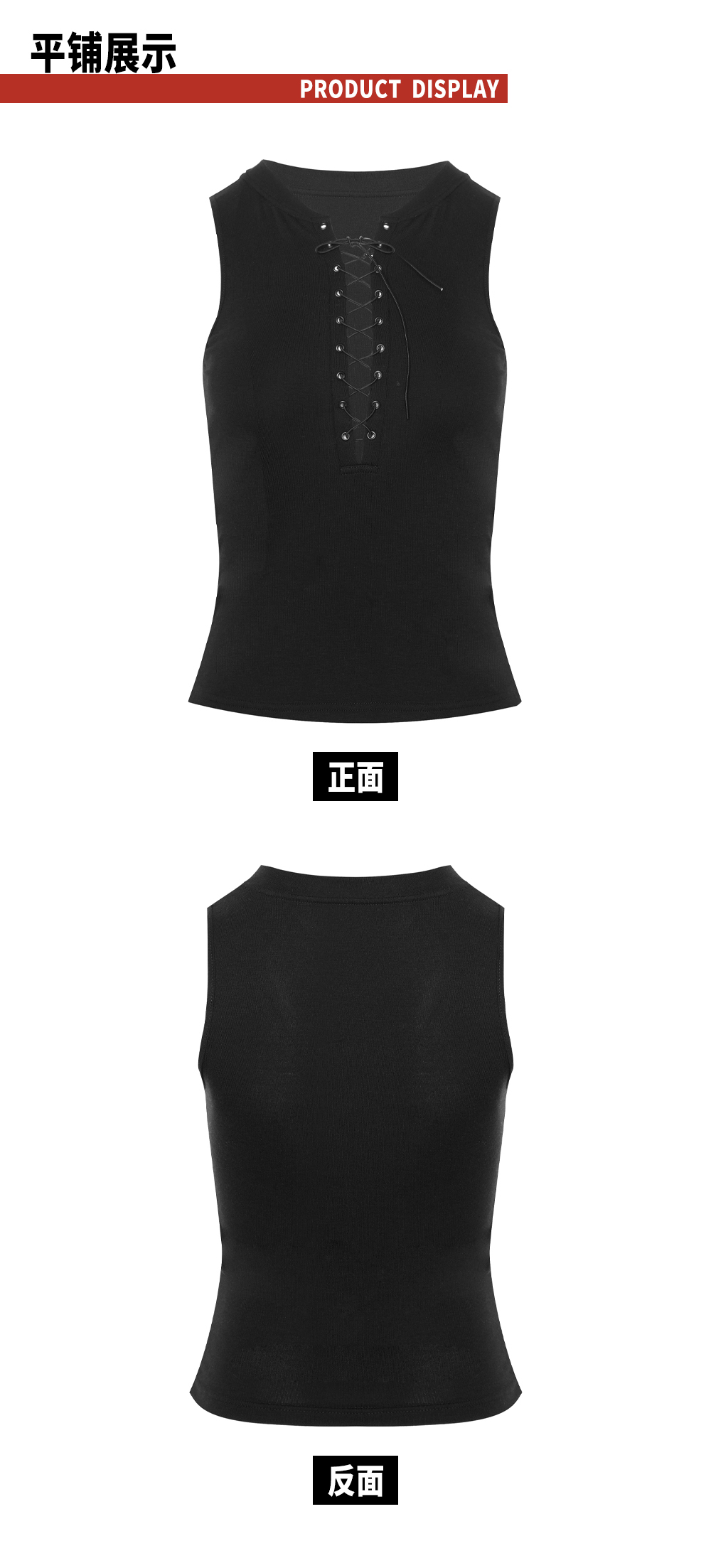 TR她热 纵情都市 黑色网纱蕾丝拼接镂空分割性感辣妹显瘦吊带背心