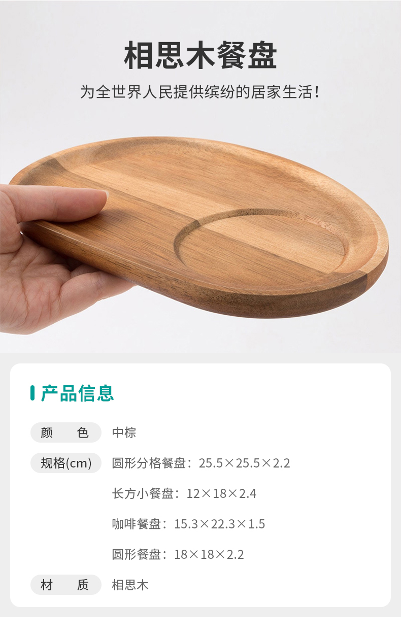 相思木 餐盘 圆形分格餐盘/咖啡餐盘