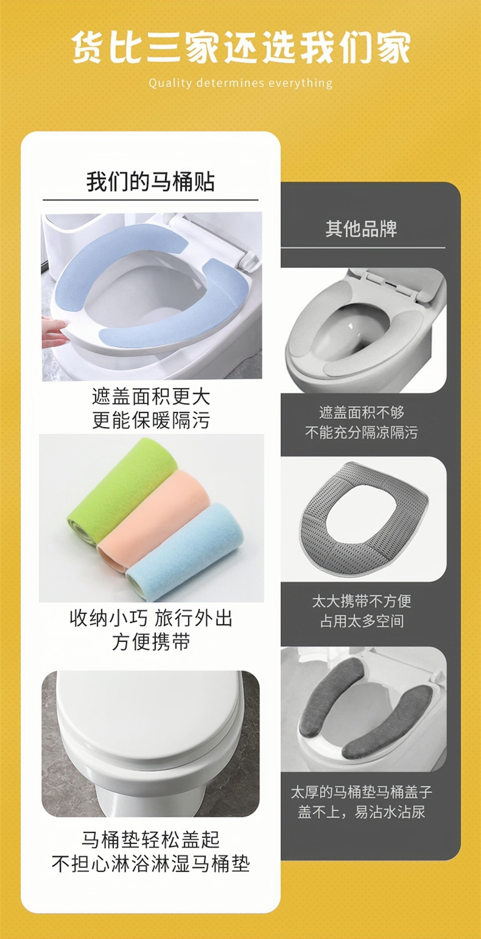 用一杯奶茶的钱买一个可以 无限重复使用、防水隔菌的马桶垫 为了自己和家人的健康 还有冬季不要再受凉的屁屁! 听上去是一笔很划算的投资~ 【品名】MAYNOS 加长无痕贴马桶垫 【规格】1包5对(10片) 【快递】极兔,韵达,中通 【偏远加运费区域】新疆,西藏+18元,青海,海南+8元 【发货地】河北 【发货时间】下单后48-72小时发出 【售后标准】破损,丢件,少件结构问题包退换。客户签收产品后,无产品质量问题,不影响二次销售的情况下,支持7天内退货退款,退货运费自理。如有质量问题收到后第一时间内反馈)若是质量问题群里反馈并补贴运费