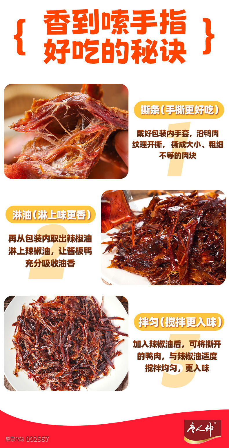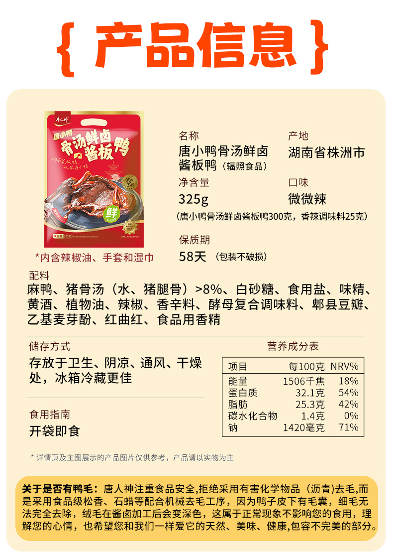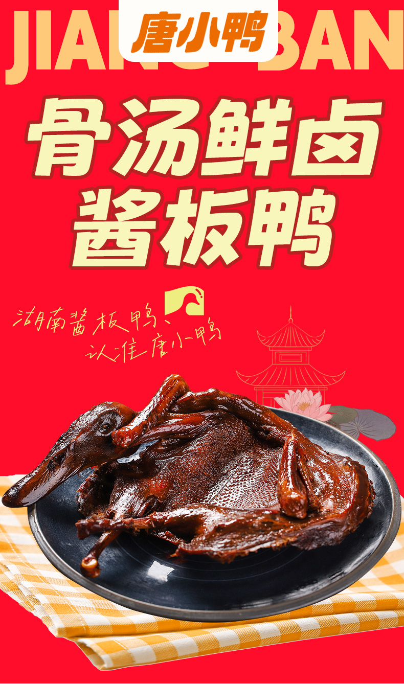唐人神唐小鸭骨汤鲜卤酱板鸭325g卤鸭鲜香骨汤熬制风味微辣手撕鸭