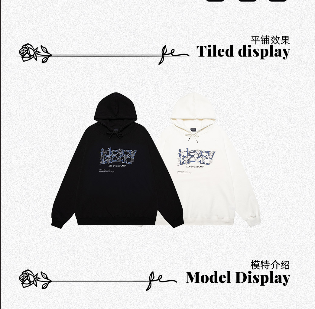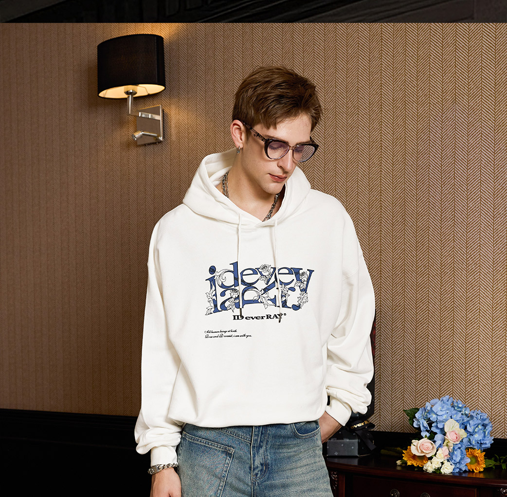 IDEVERRAY早秋新品印花连帽卫衣男女同款宽松长袖外穿白色上衣潮
