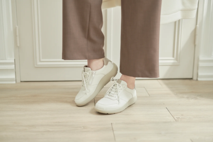 更贴心的是足弓处的支撑。很多人不知道,拇趾外翻的脚长时间走路,足弓更容易累得发酸,普通鞋了的平底设计只会加重负担。这双鞋以学术研究为基础,精准对着足弓的横弓、外侧纵弓、内侧纵弓做了毫米级调整走路时像有只稳当的手托着足弓,不会有空空荡荡的悬空感”,也不会有硬邦邦的“顶压感”,连逛两小时超市,脚掌都还是轻松的。