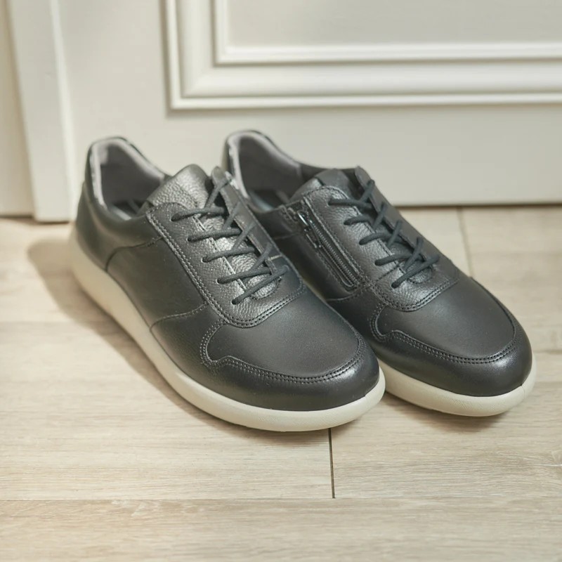 真皮鞋面也懂“敏感脚”的需求,软乎乎的质感不会像硬皮革那样磨脚踝,穿几次就会顺着脚型变贴合:侧边的拉链设计更是省心,不用弯腰系鞋带,轻轻一拉就能穿好,对早上赶时间的人太友好。