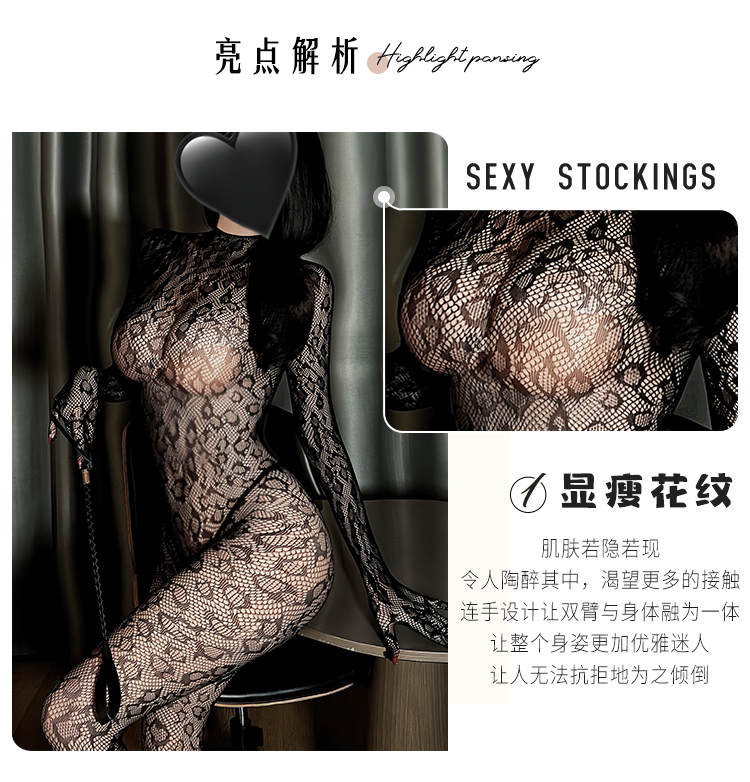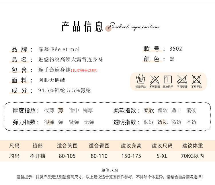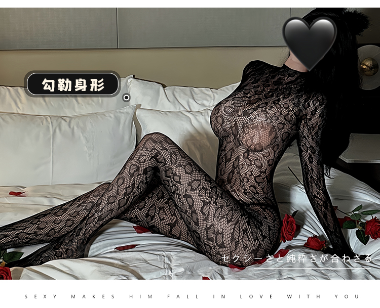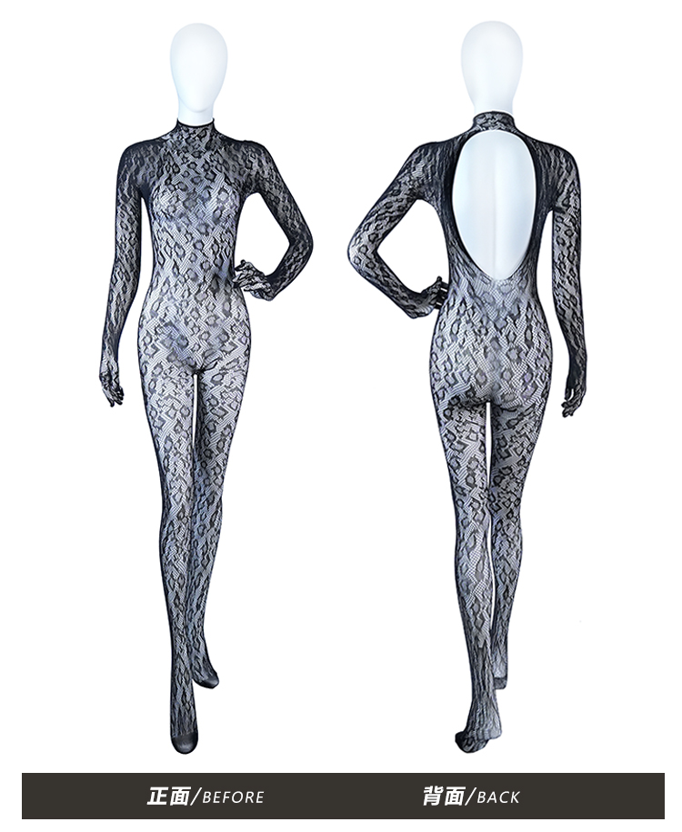 【情趣内衣】霏慕 魅惑豹纹高领大露背连身袜3502