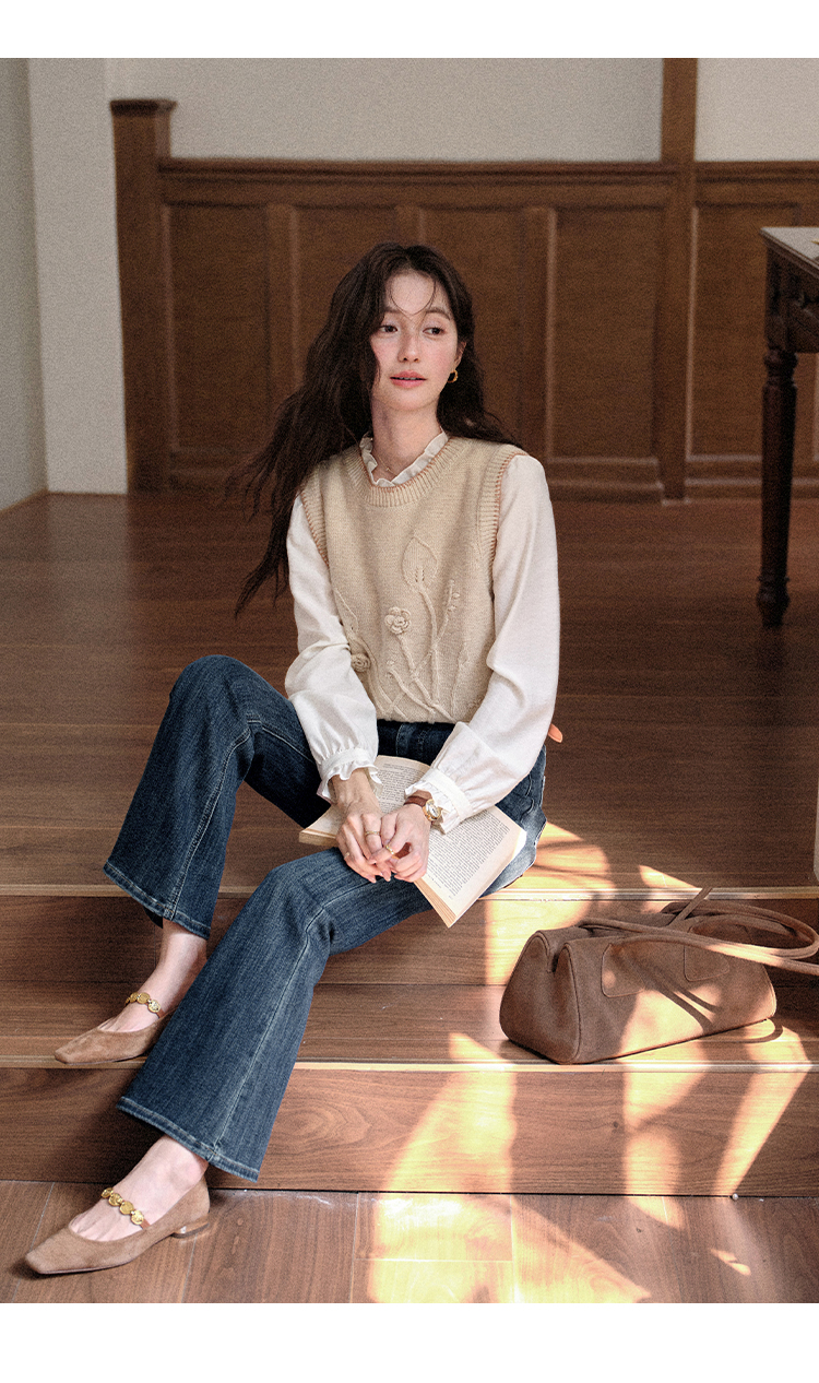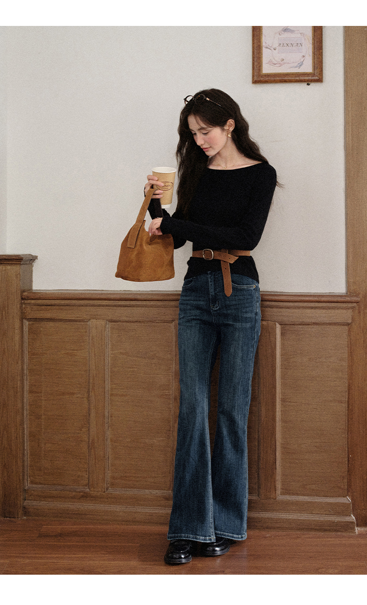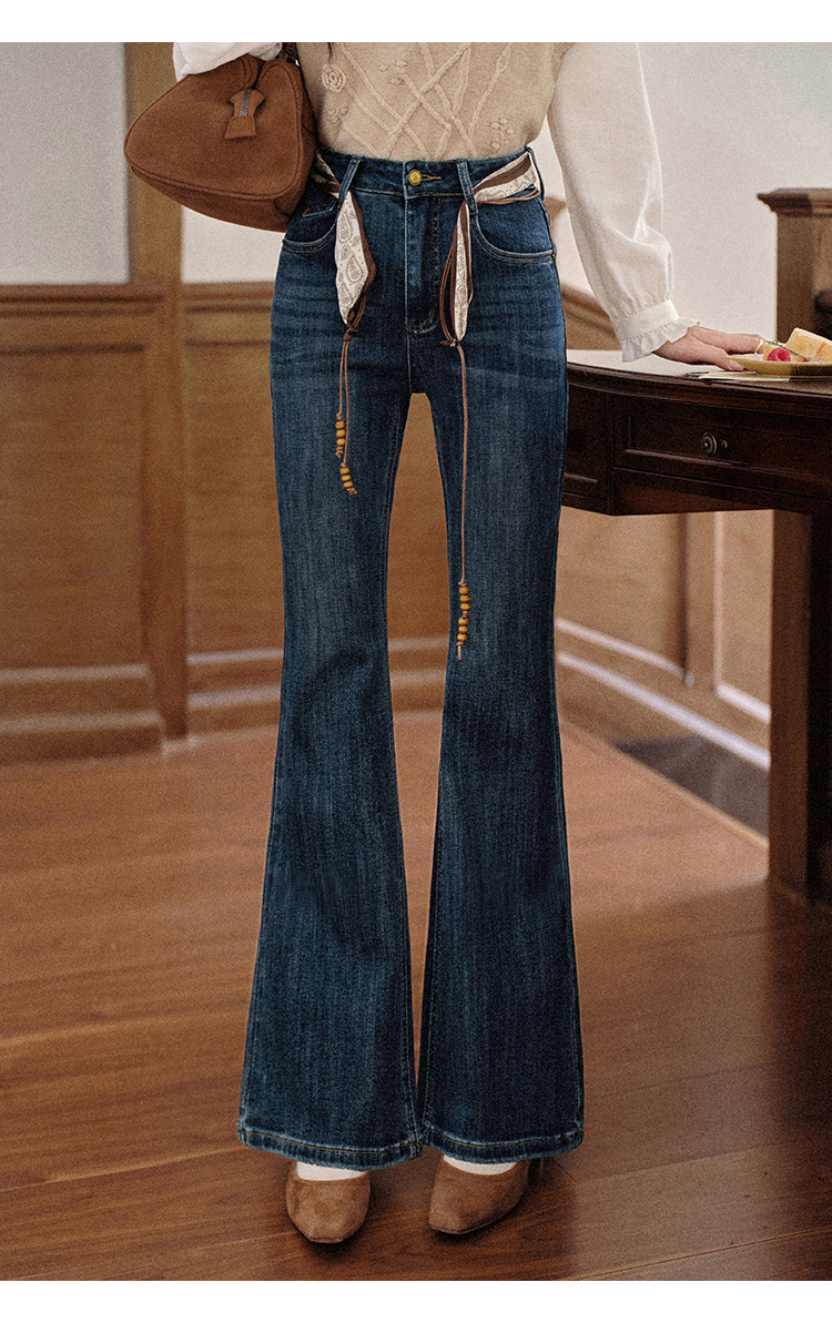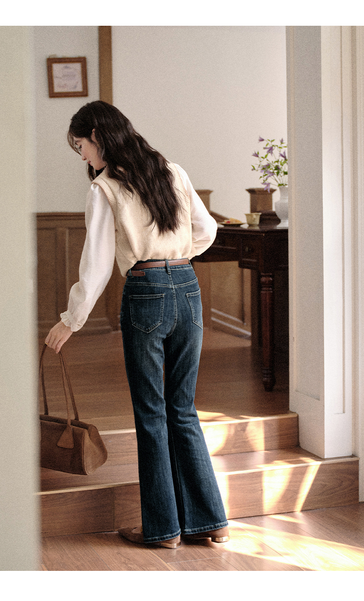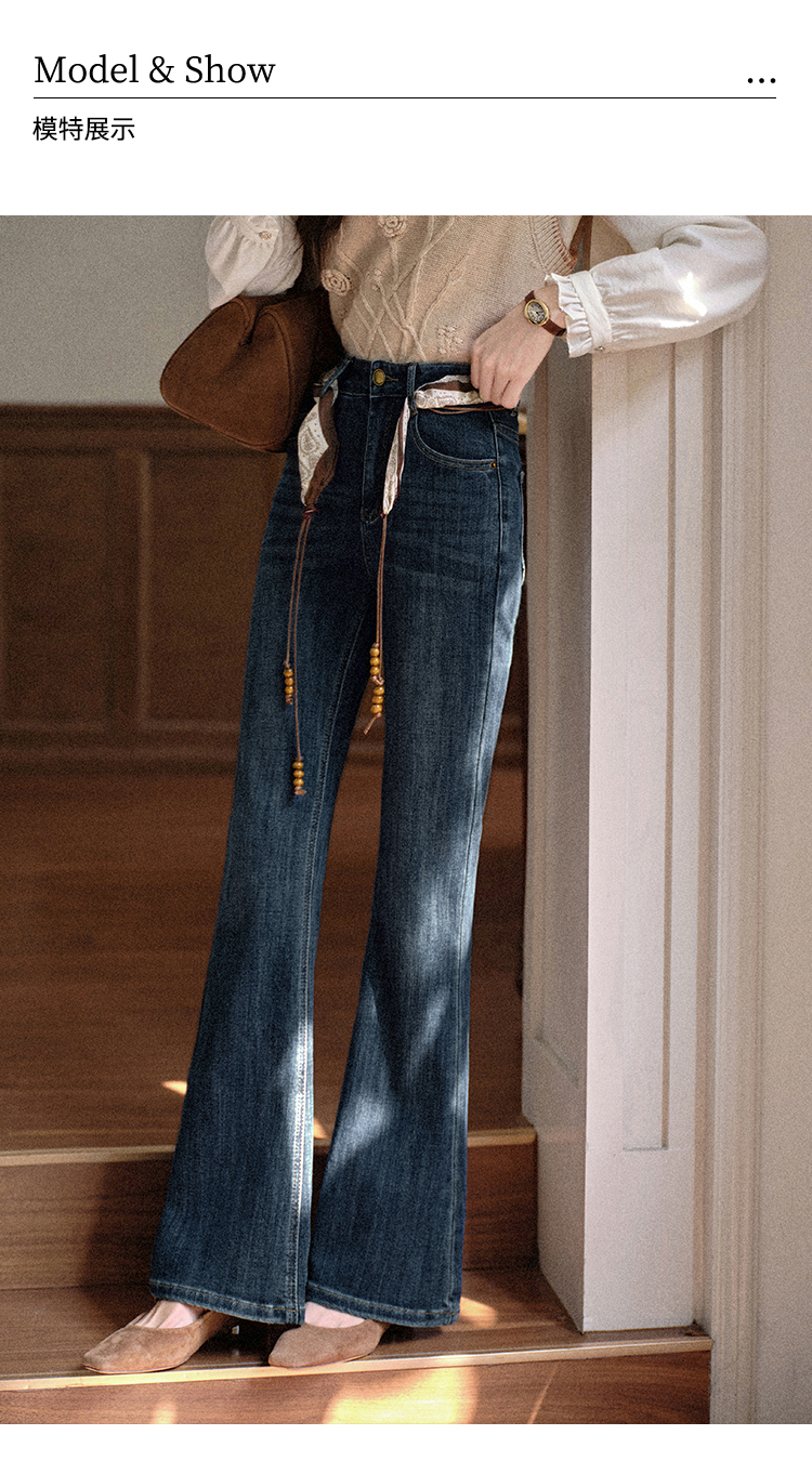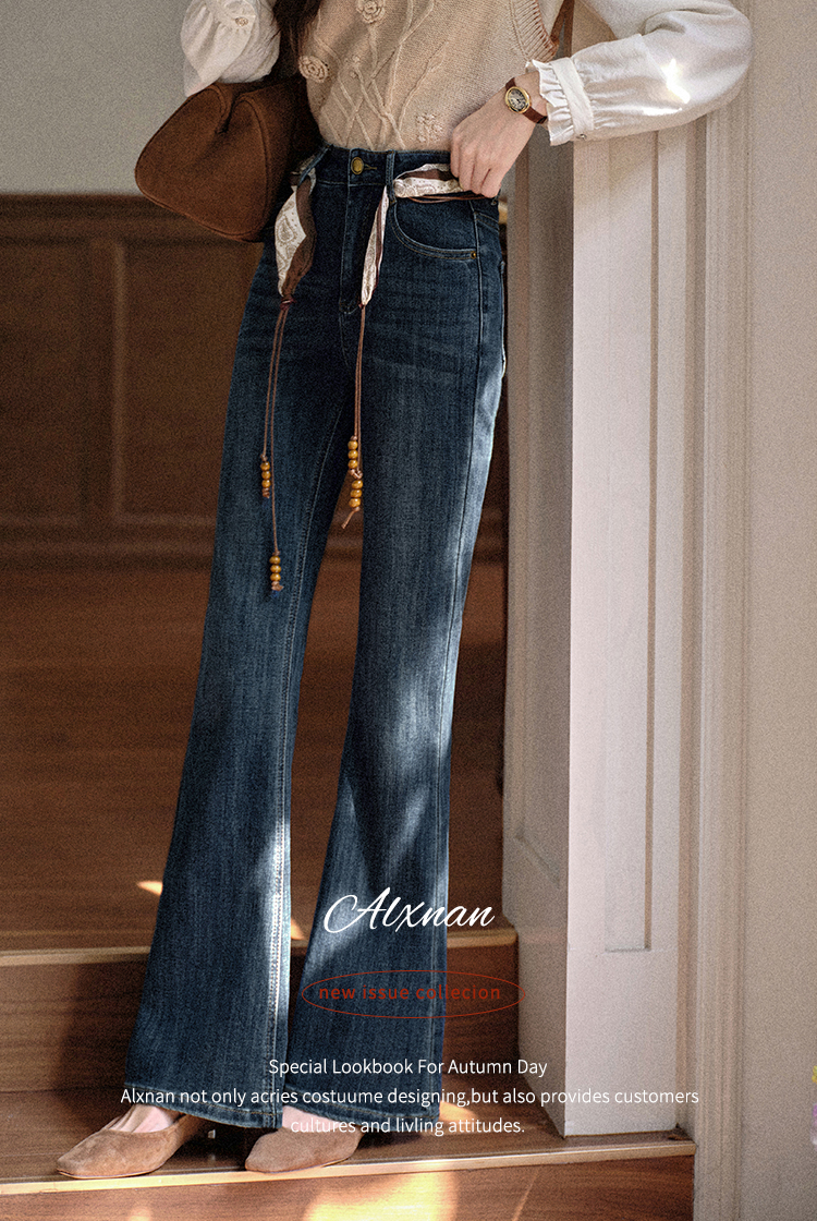 鹿向南「长腿公式」复古蓝色修身显瘦高腰牛仔裤女秋新款直筒长裤