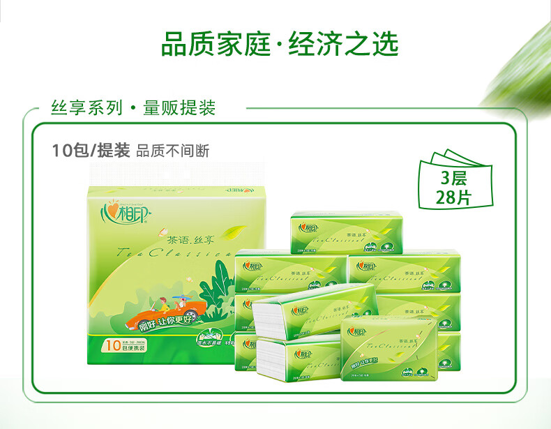 心相印丝享系列10包×28张三层抽纸餐巾纸