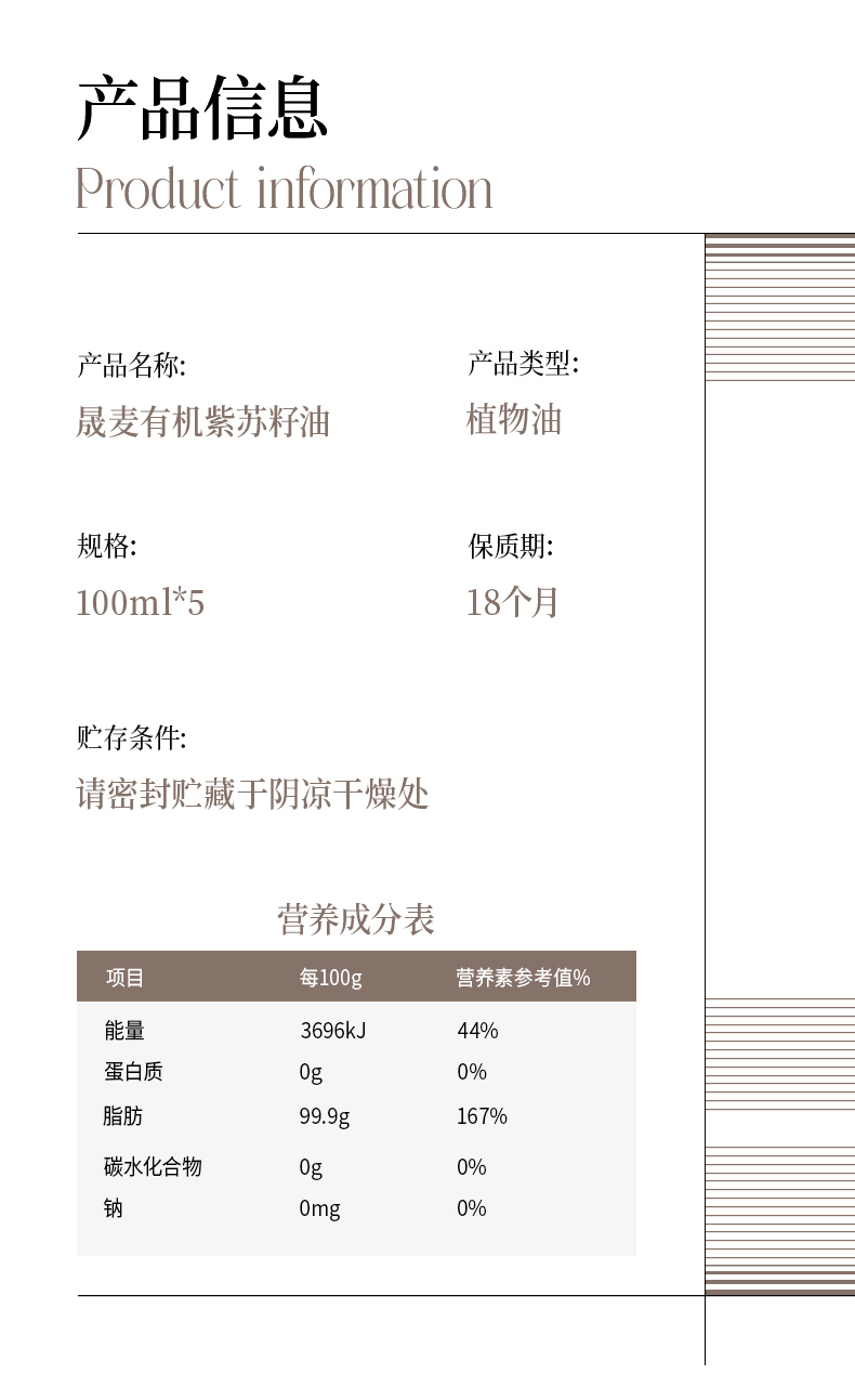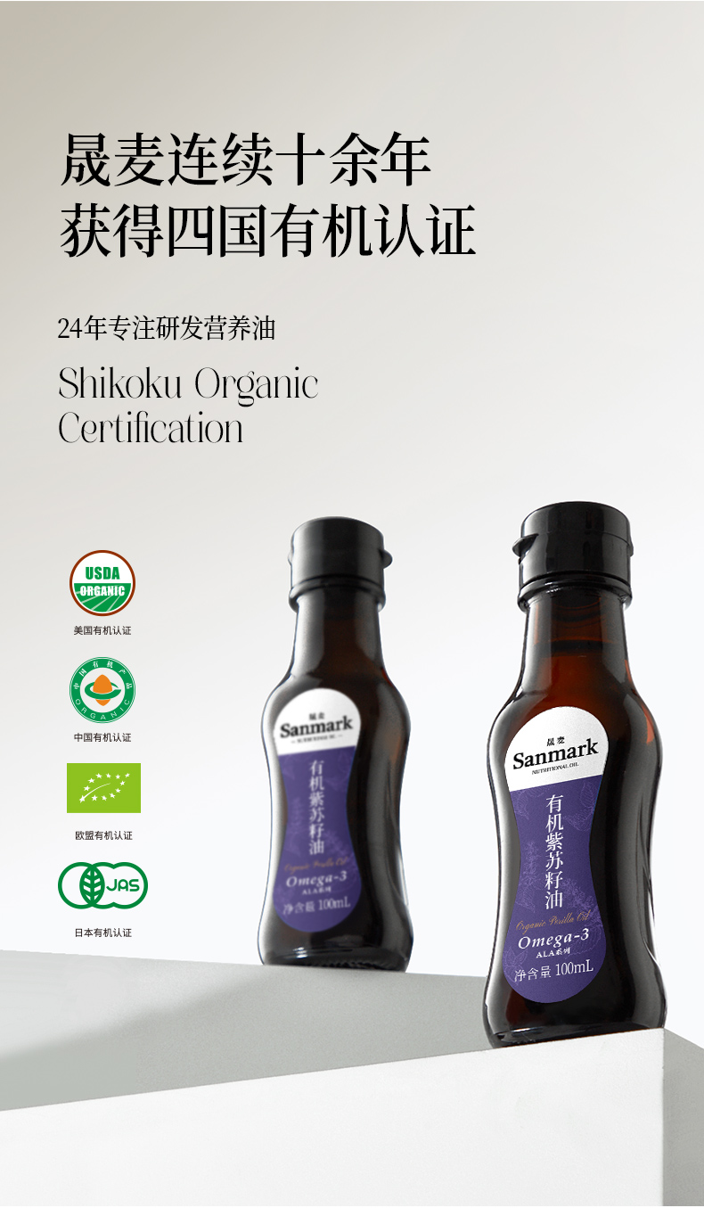 晟麦 有机纯紫苏籽油100ml*5一级冷榨高亚麻酸官方正品食用油礼盒