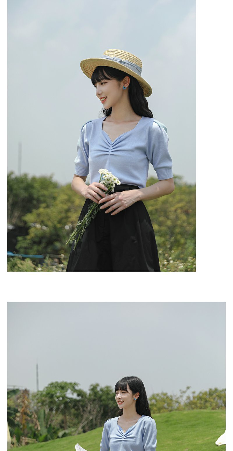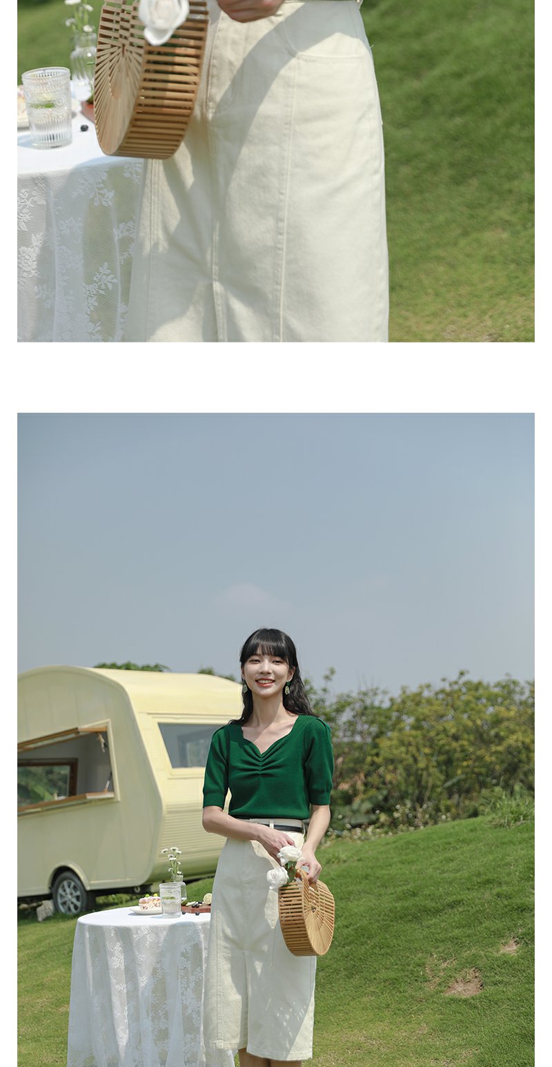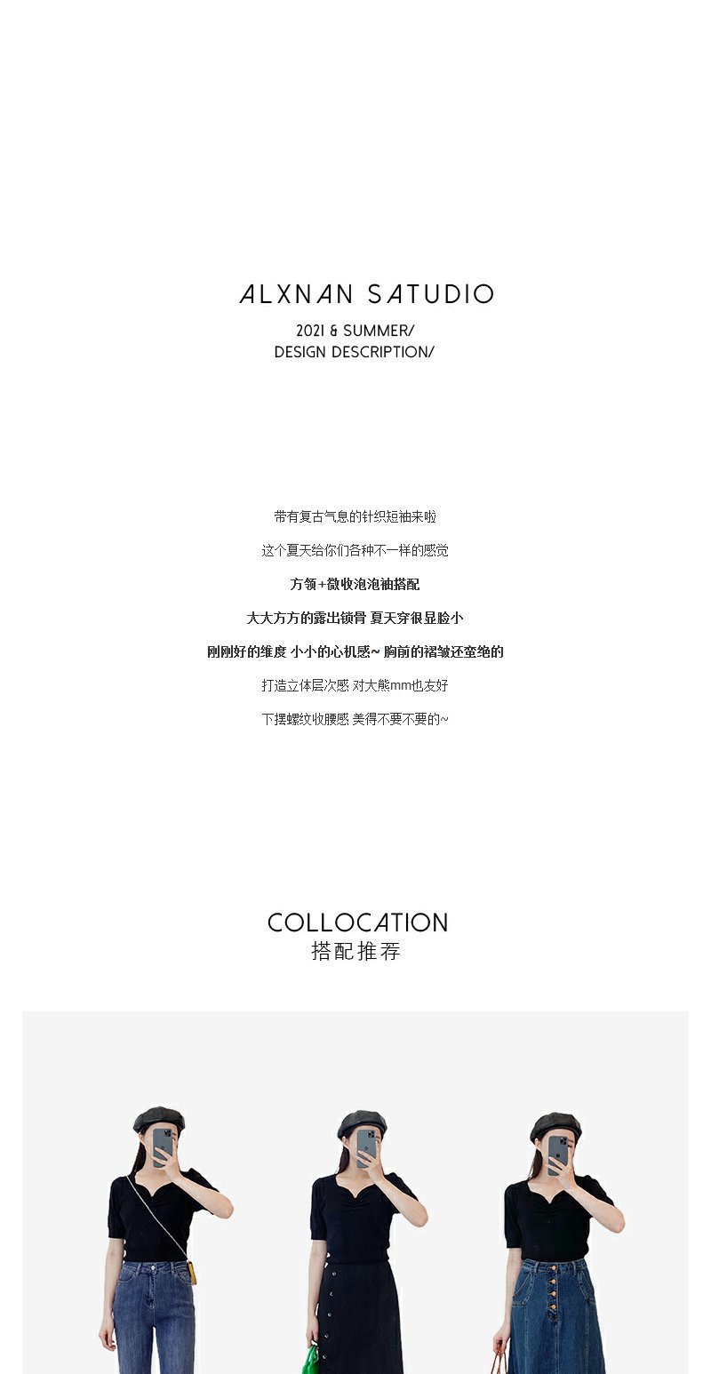 鹿向南短袖针织衫薄款设计感小众夏季短款上衣白色LXN17730