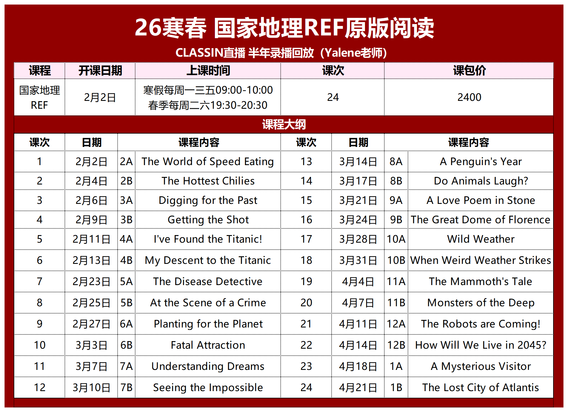 26寒春 国家地理REF原版阅读 课包(Yalene)