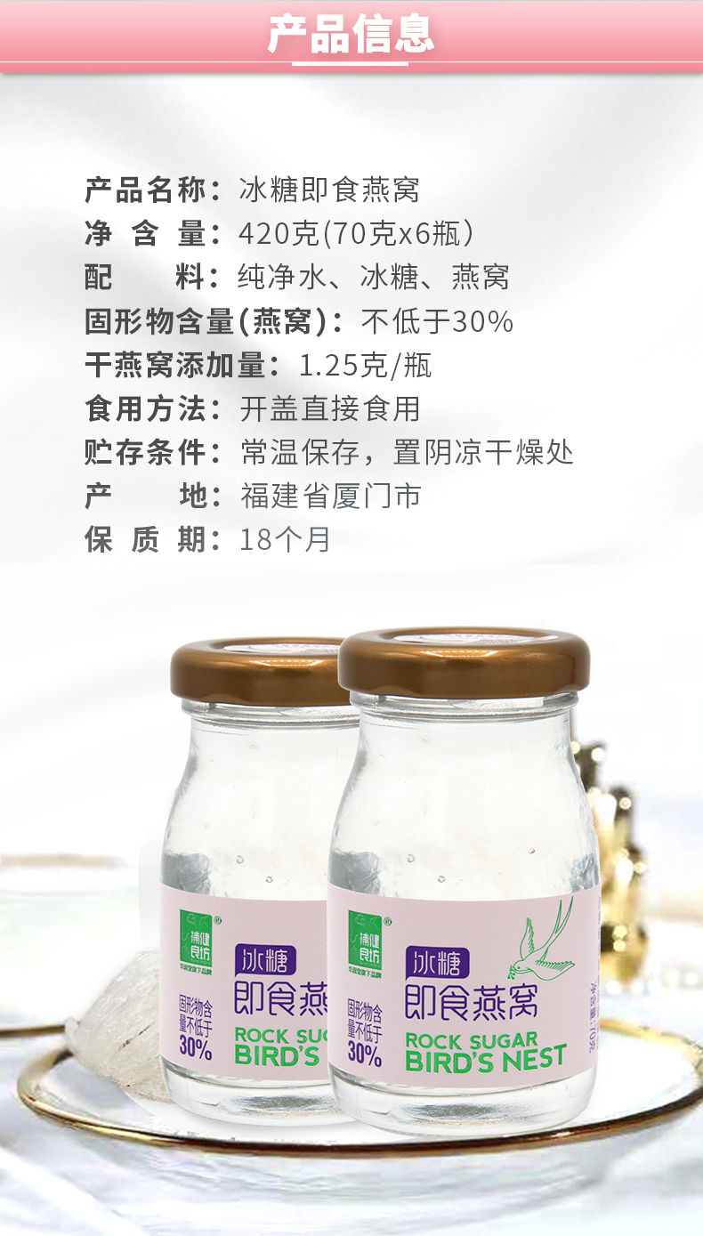 【P】华润堂 补健良坊 即食燕窝 420克(70克x6瓶) 冰糖
