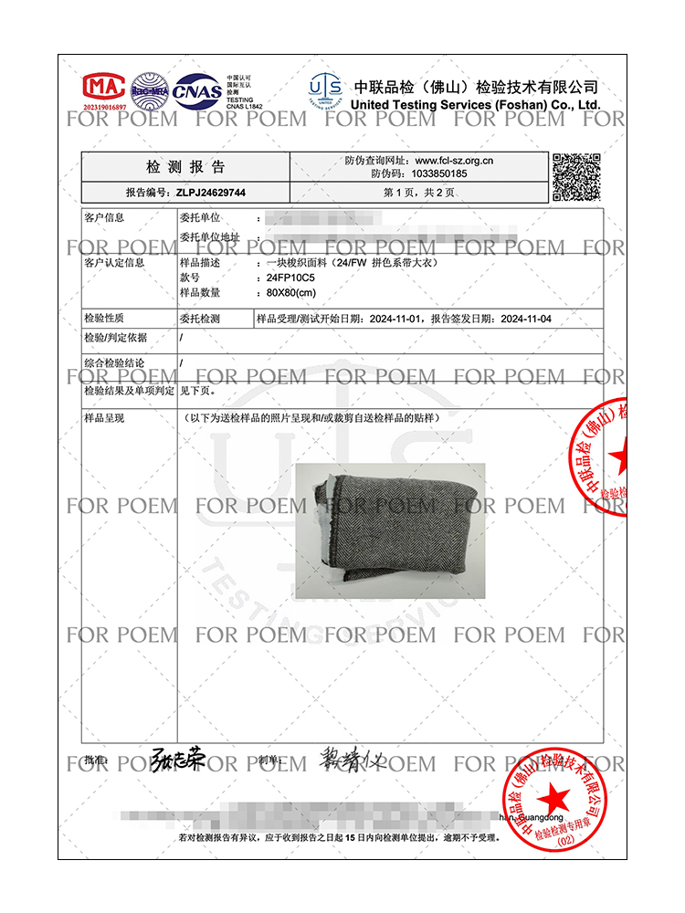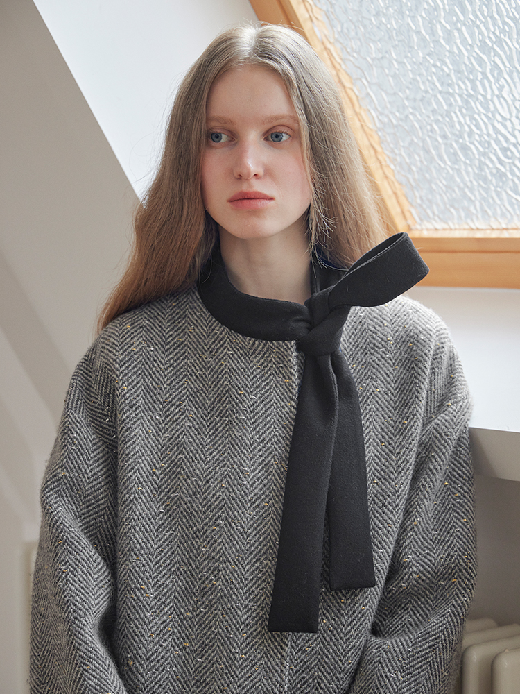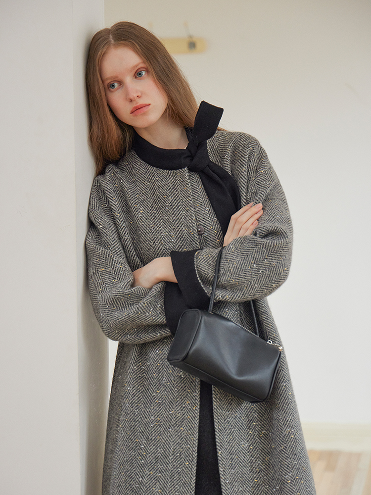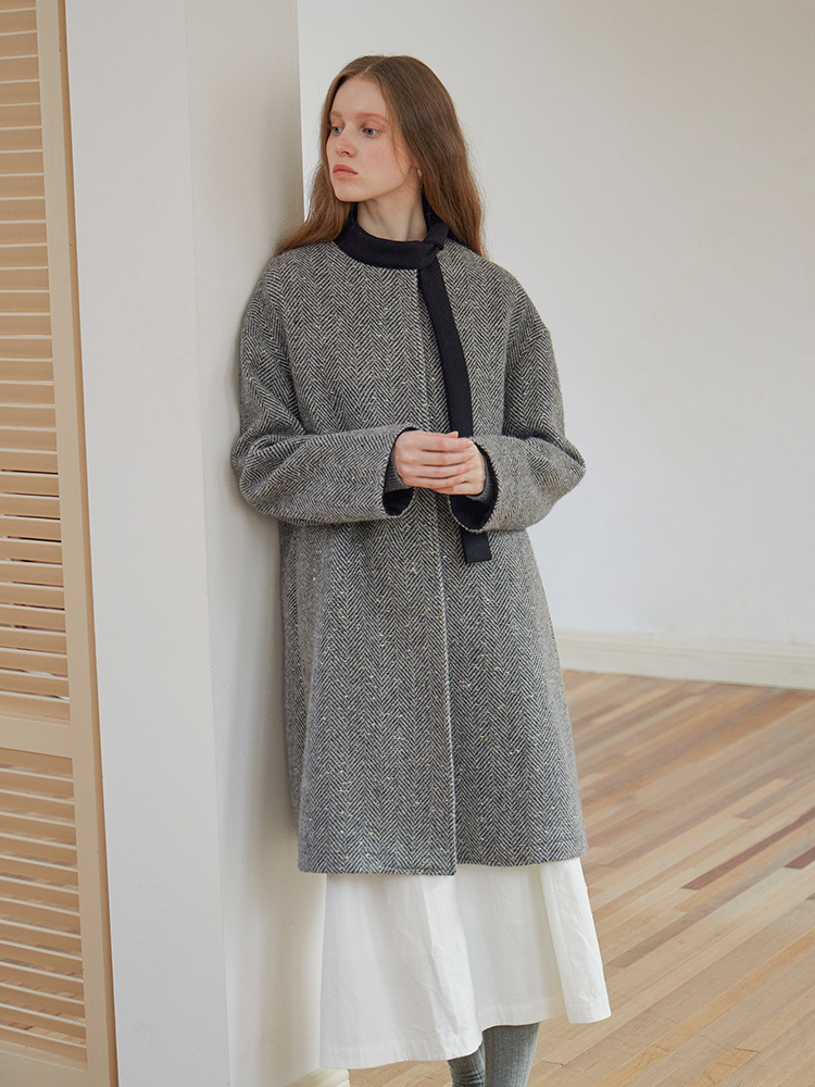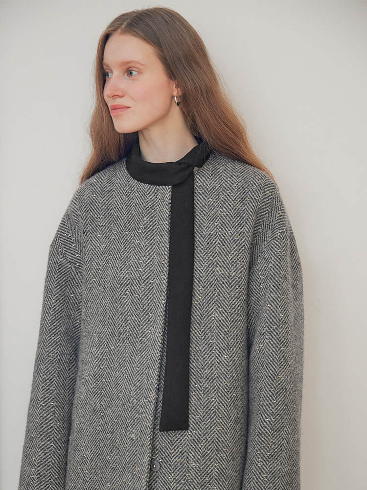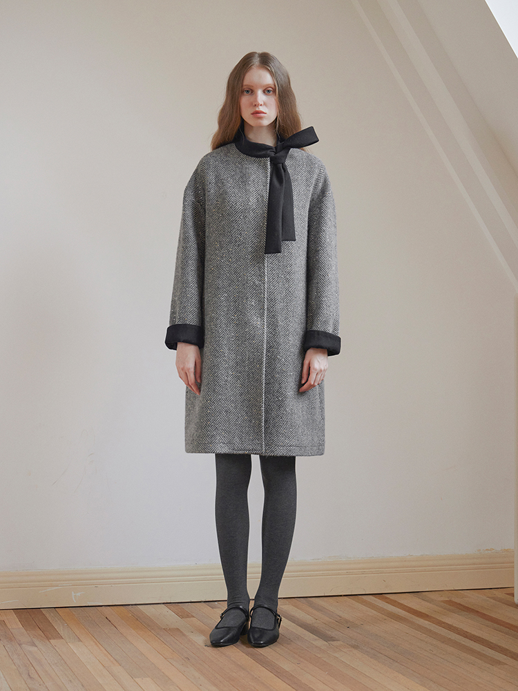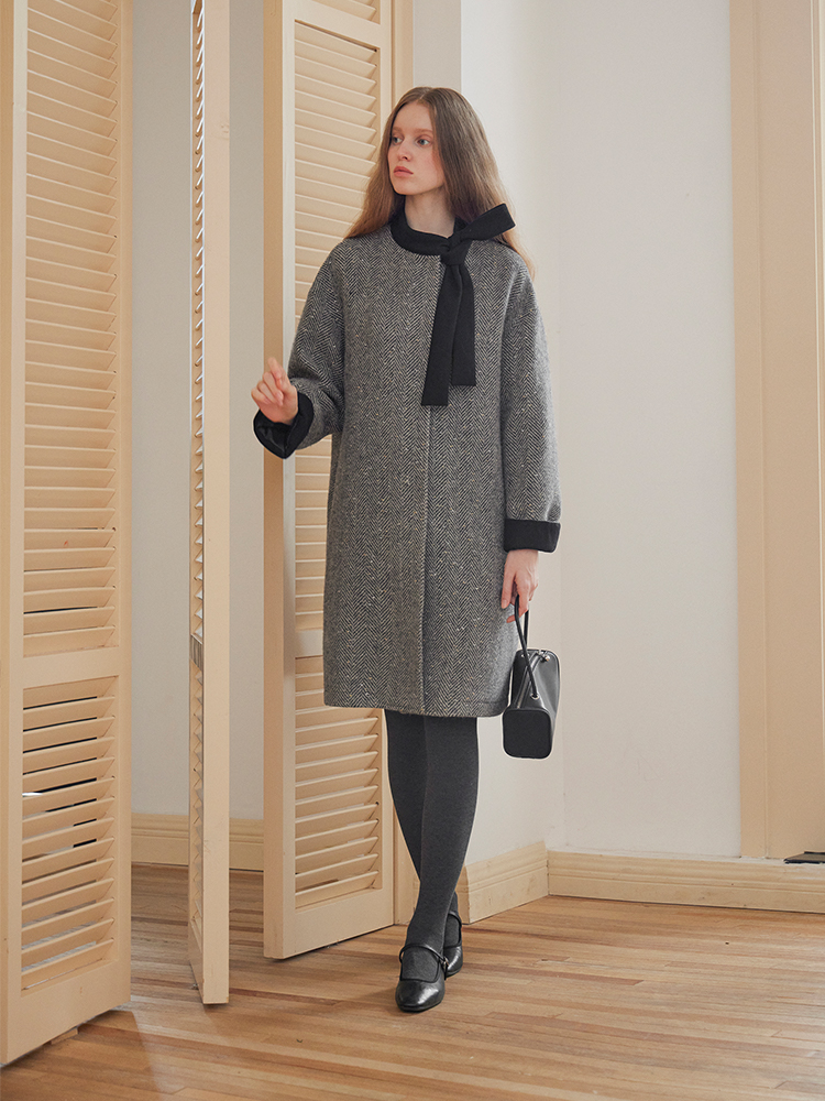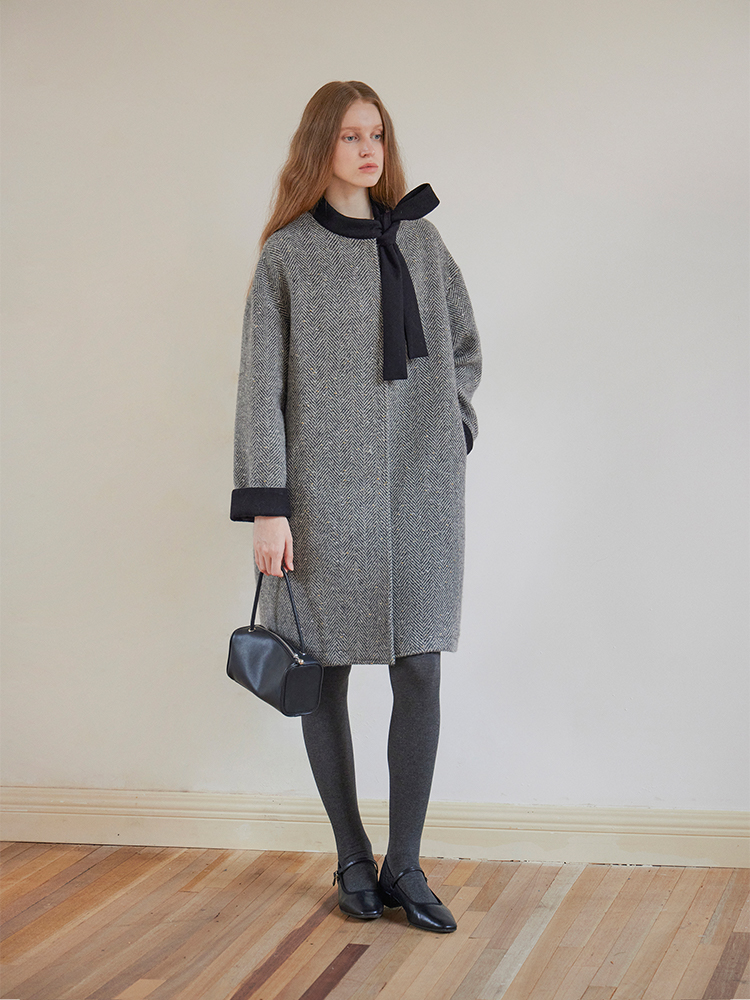 ForPoem 现货 24/FW原创设计中长款宽松廓形人字纹羊毛拼色系带大衣