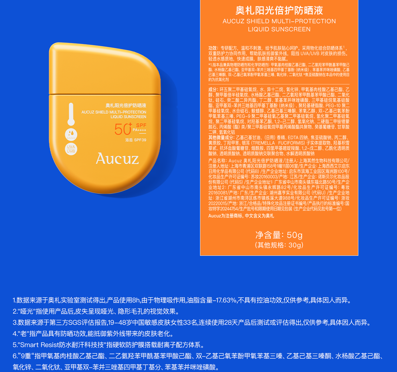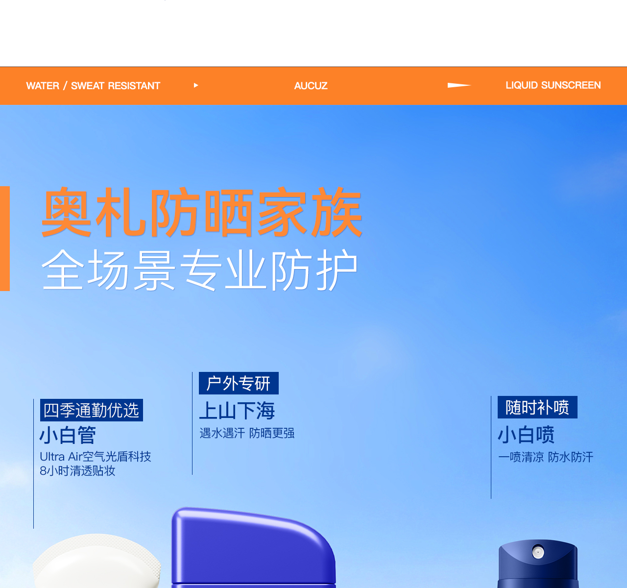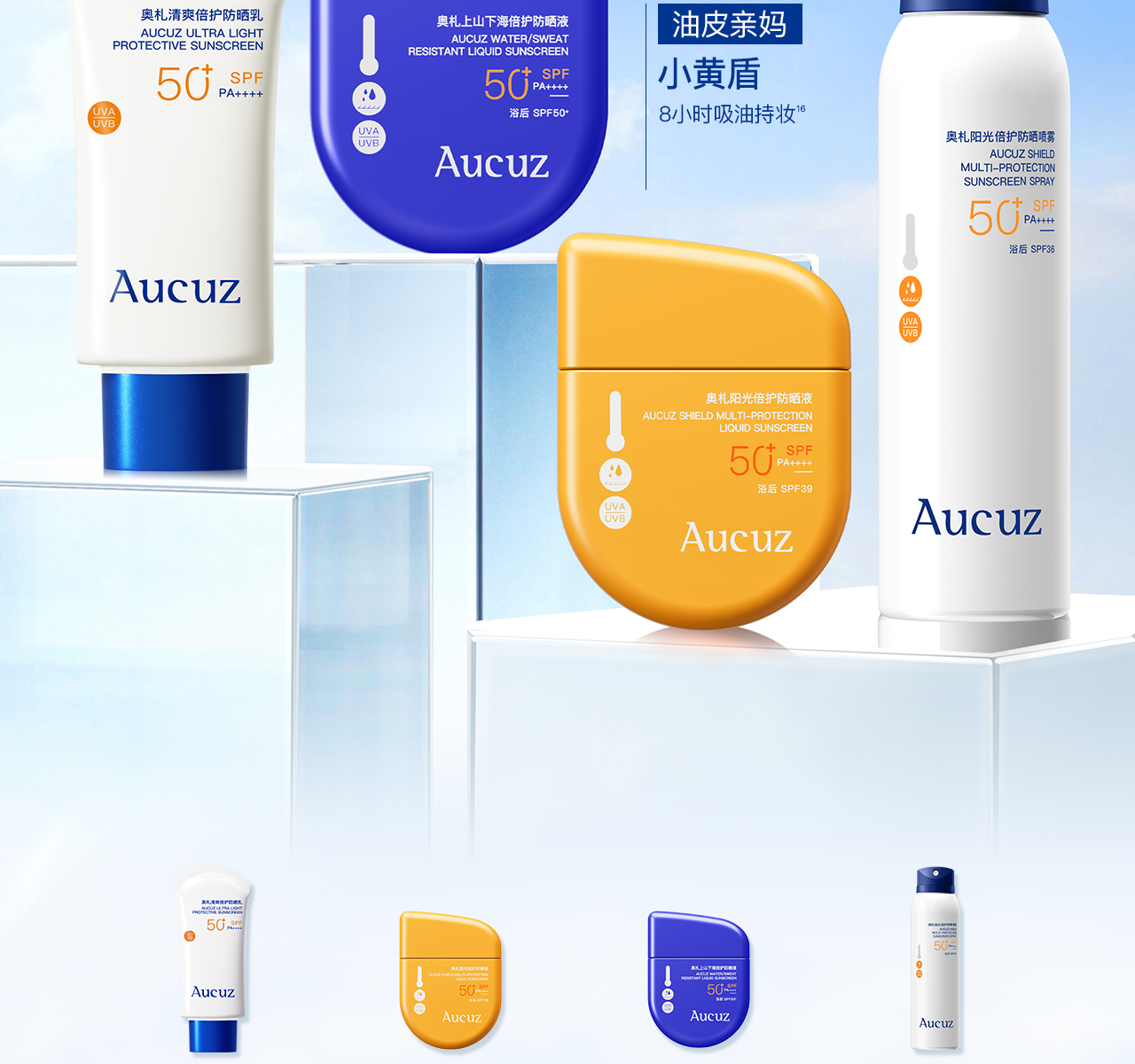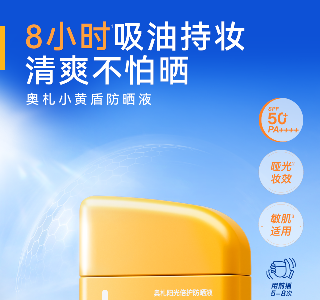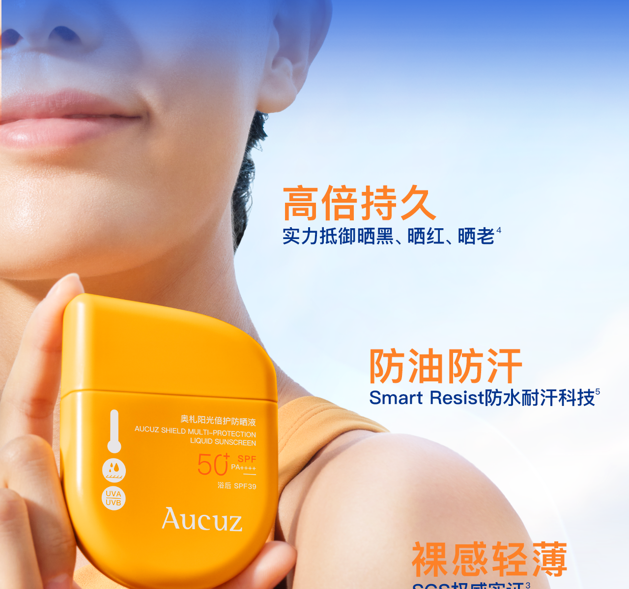 【防油防汗】Aucuz奥札 阳光倍护防晒液 小黄盾