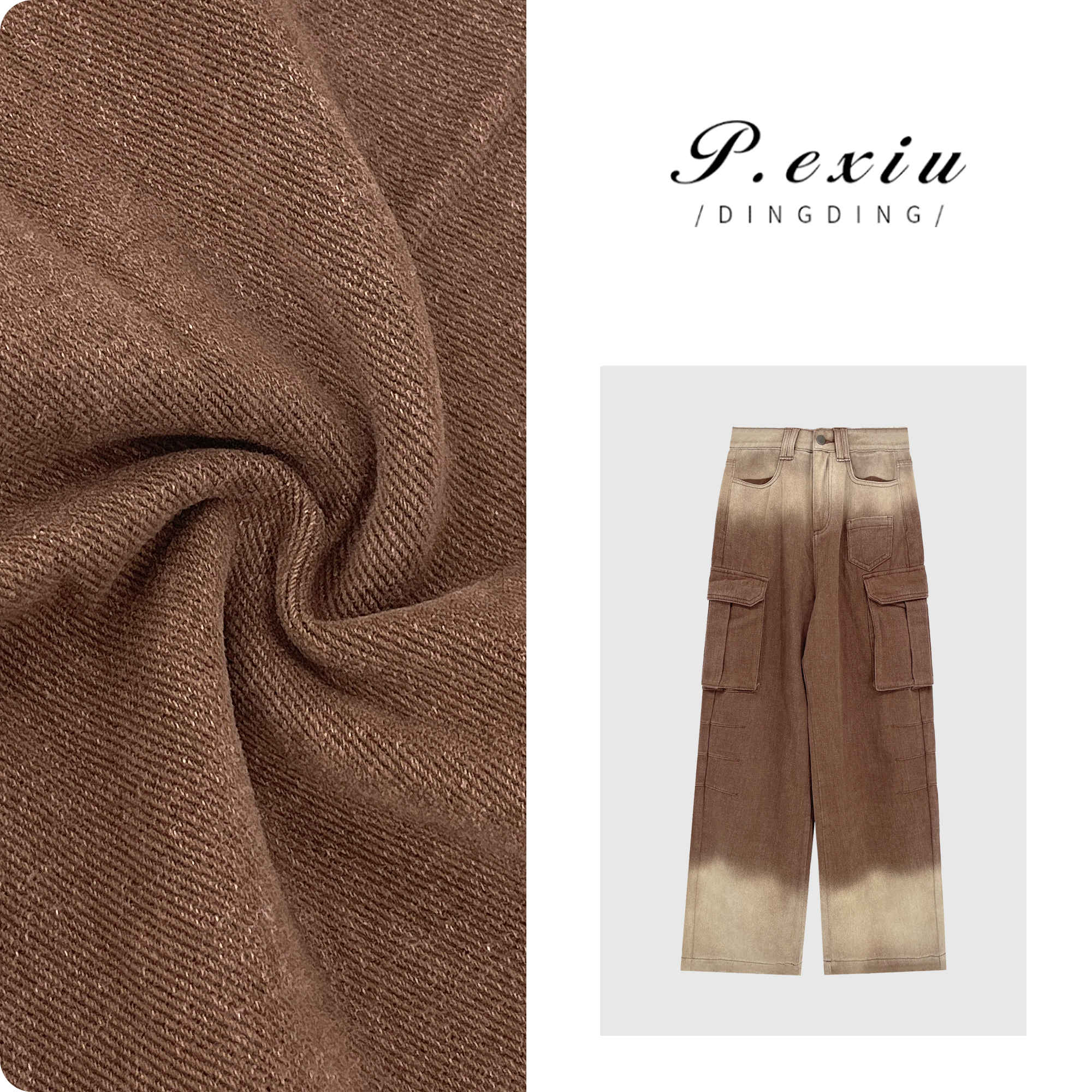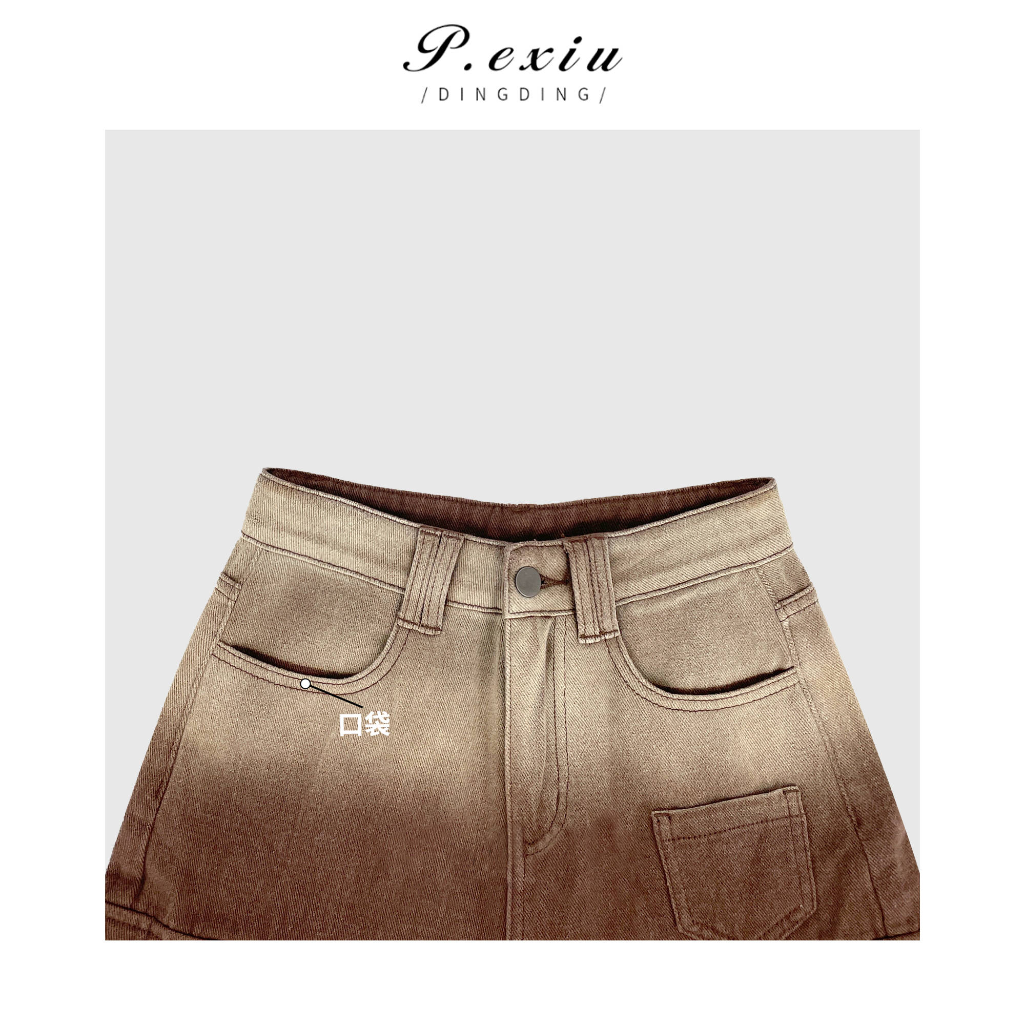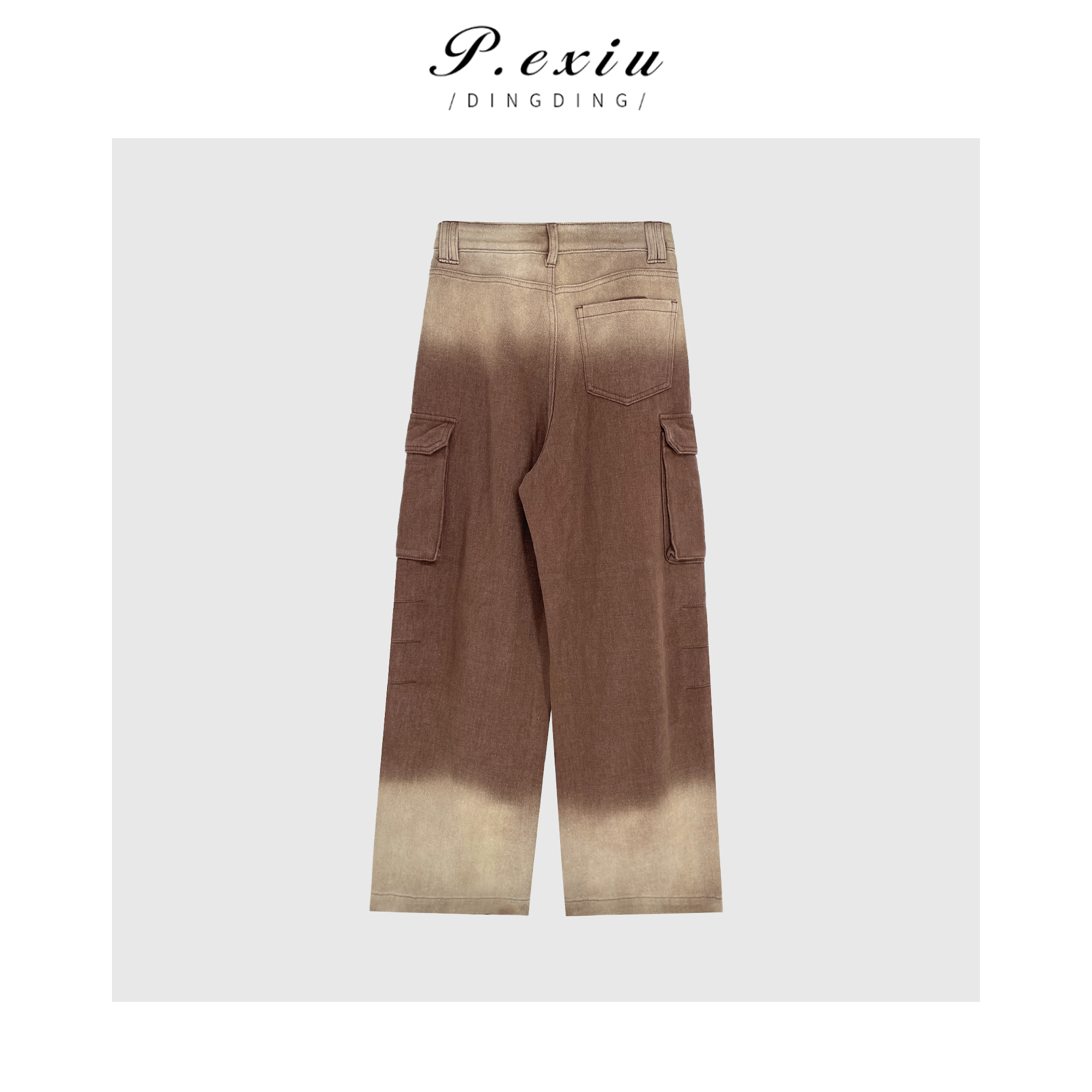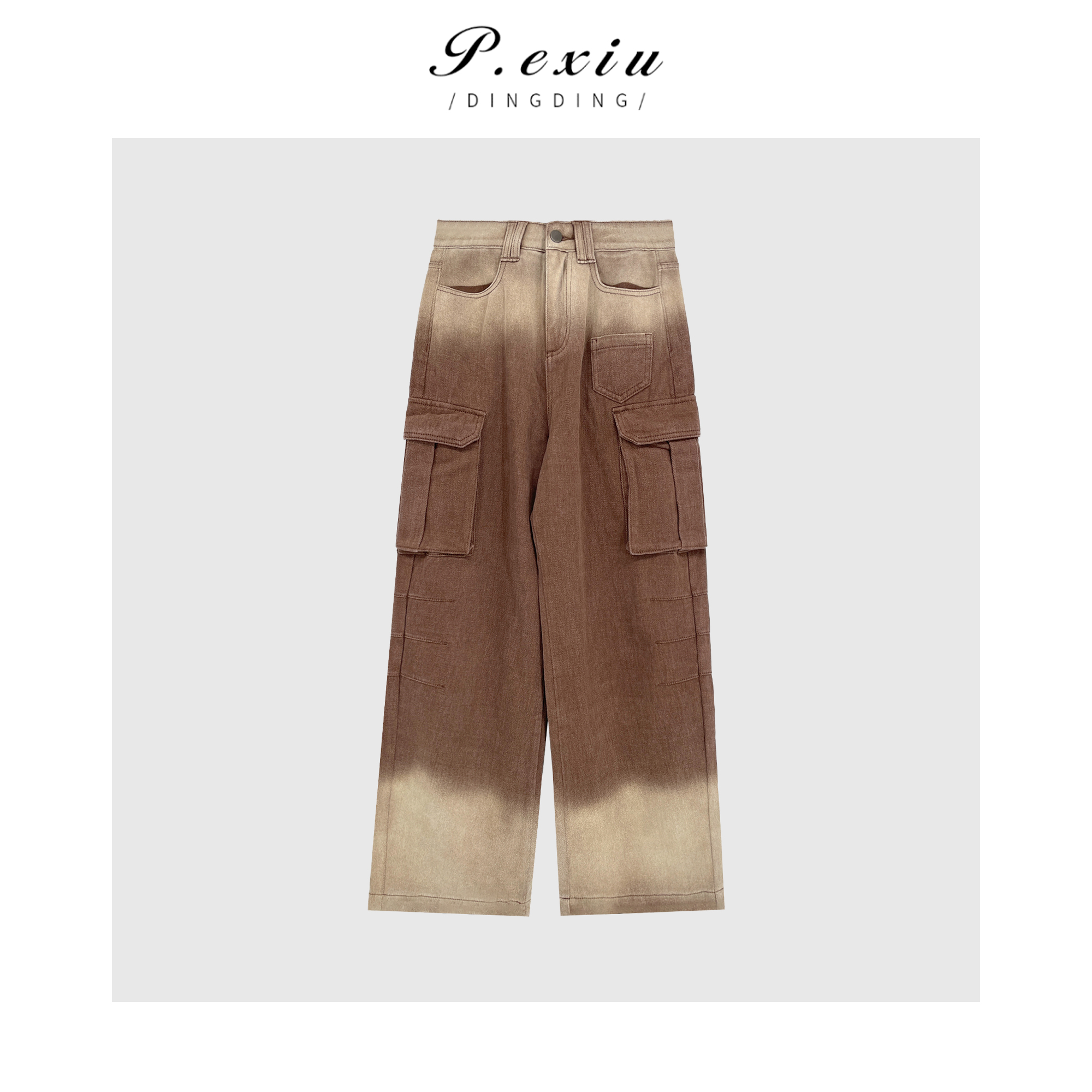 04-3潘依绣丁丁宠粉 PanYiXiu/潘依绣工装风美式复古渐变宽松直筒阔腿牛仔裤 D6021