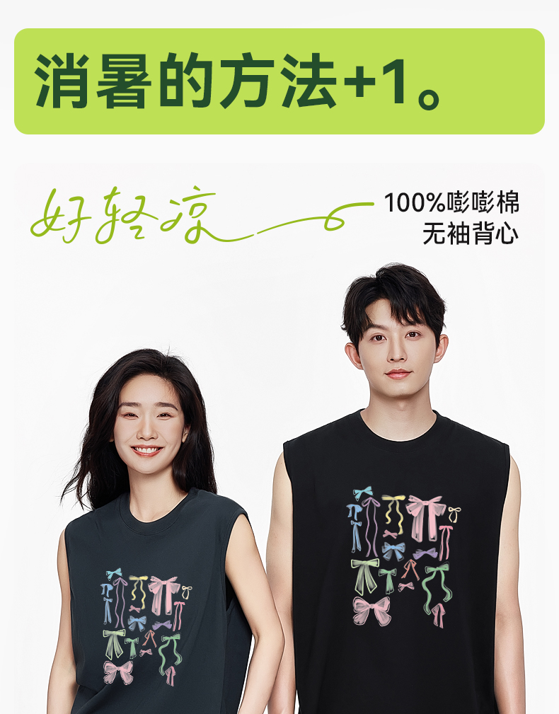 「棉的美学」小清新凉感纯棉女T恤印花款夏季宽松休闲坎肩背心