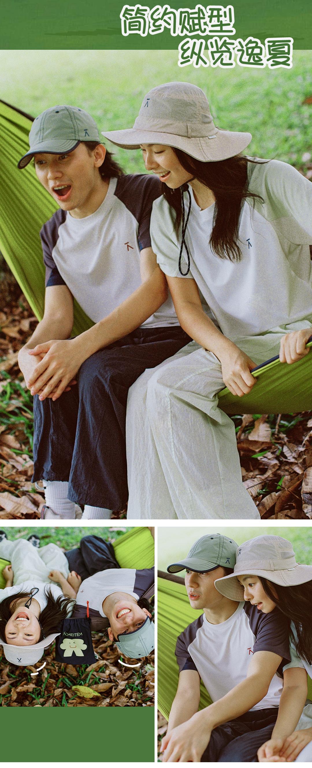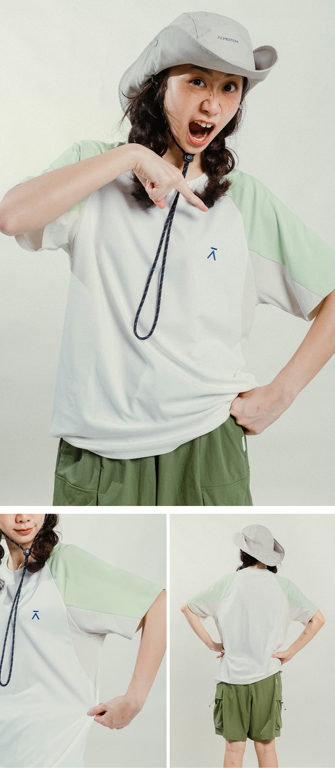 【出游季特惠】ACMEITEM爱棵米-户外情侣插肩撞色短袖T恤微宽松上衣男女UPF50+GAG3440758C