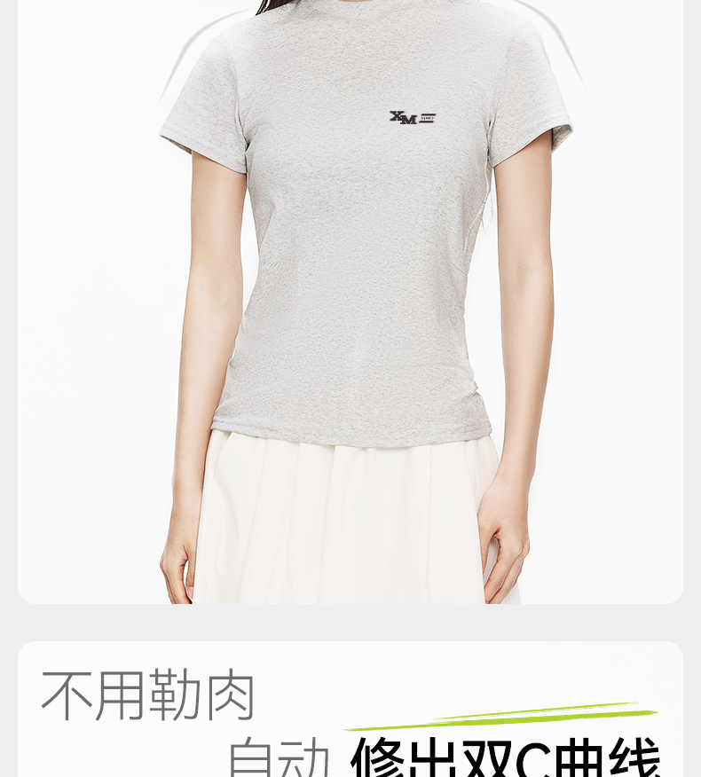 「棉的美学」圆领正肩辣妹短款T恤女款夏季透气修身显瘦印花上衣