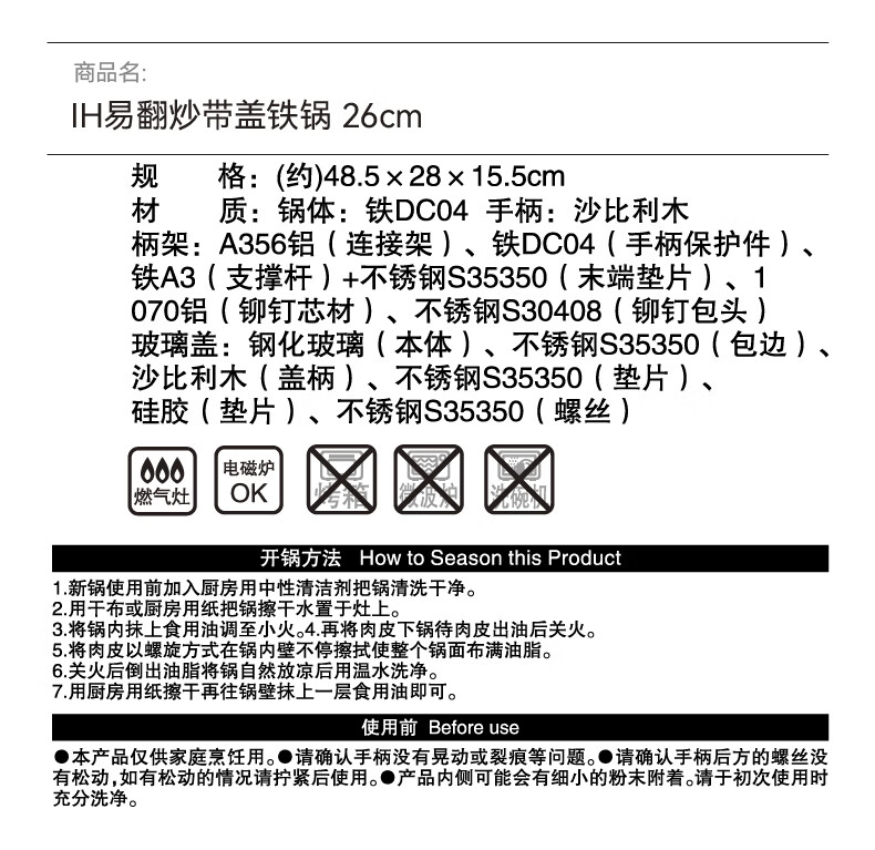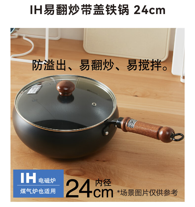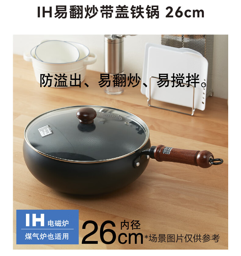 NITORI宜得利家居 厨房锅具炒菜锅IH易翻炒带盖铁锅燃气灶适用锅