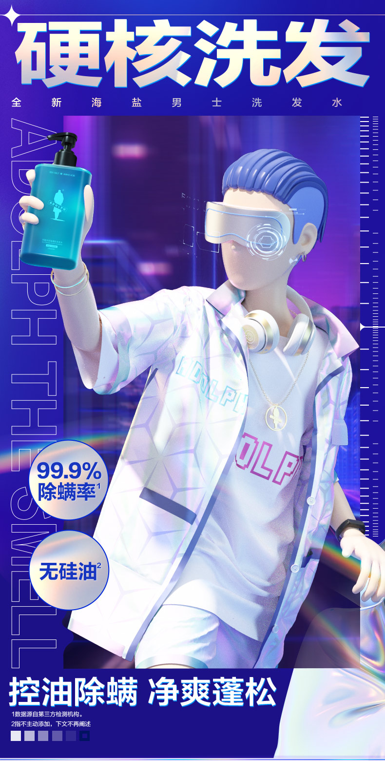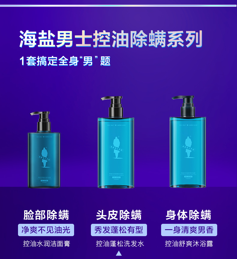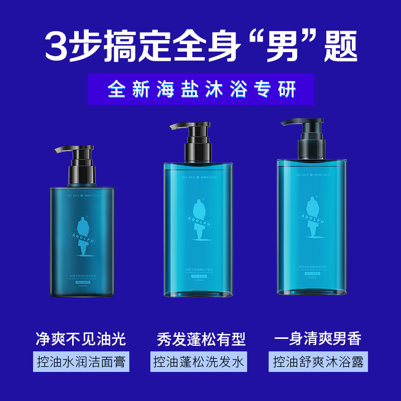 阿道夫男士海盐洗发水(控油蓬松)380ml